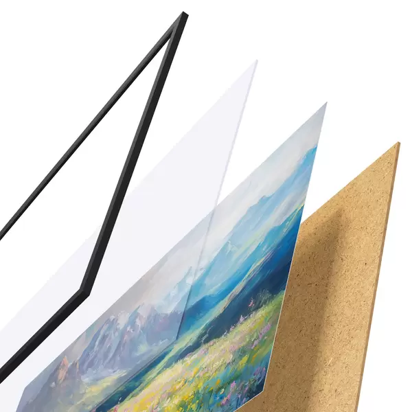 Plakat koosneb raamist, pleksiklaasist, trükitud pildist ja puitlaastplaadist alusplaadist. Tänu tagaküljel olevatele kinnitustele saab plakati kohe seinale riputada.