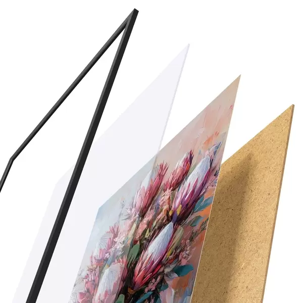 Plakat koosneb raamist, pleksiklaasist, trükitud pildist ja puitlaastplaadist alusplaadist. Tänu tagaküljel olevatele kinnitustele saab plakati kohe seinale riputada.