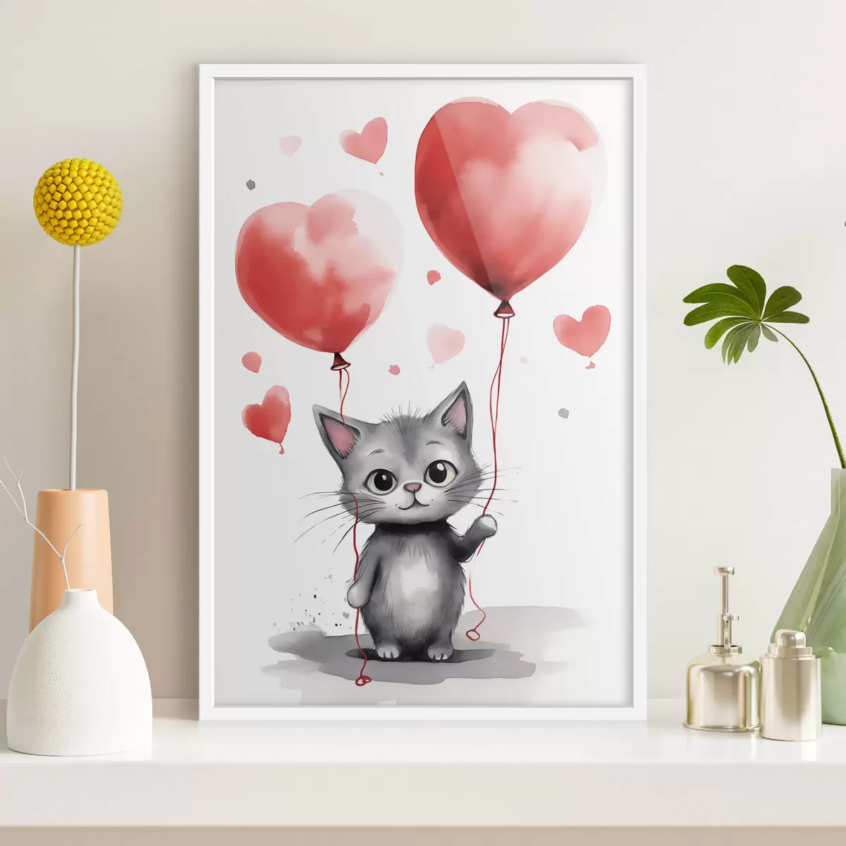 Poster Armas kassipoeg koos südamekujuliste õhupallidega Nr f42871