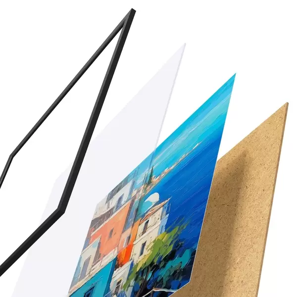 Plakat koosneb raamist, pleksiklaasist, trükitud pildist ja puitlaastplaadist alusplaadist. Tänu tagaküljel olevatele kinnitustele saab plakati kohe seinale riputada.