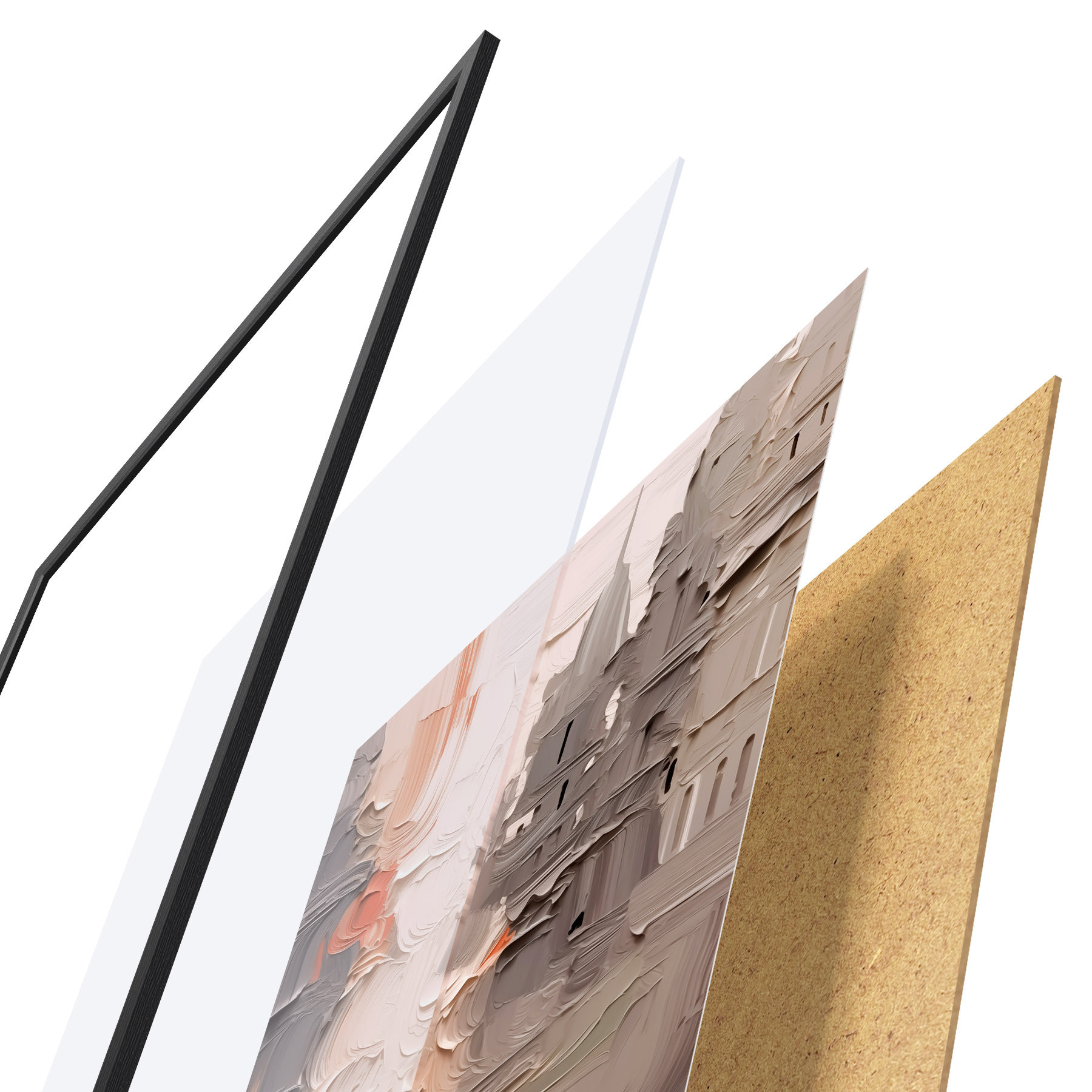 Plakat koosneb raamist, pleksiklaasist, trükitud pildist ja puitlaastplaadist alusplaadist. Tänu tagaküljel olevatele kinnitustele saab plakati kohe seinale riputada.