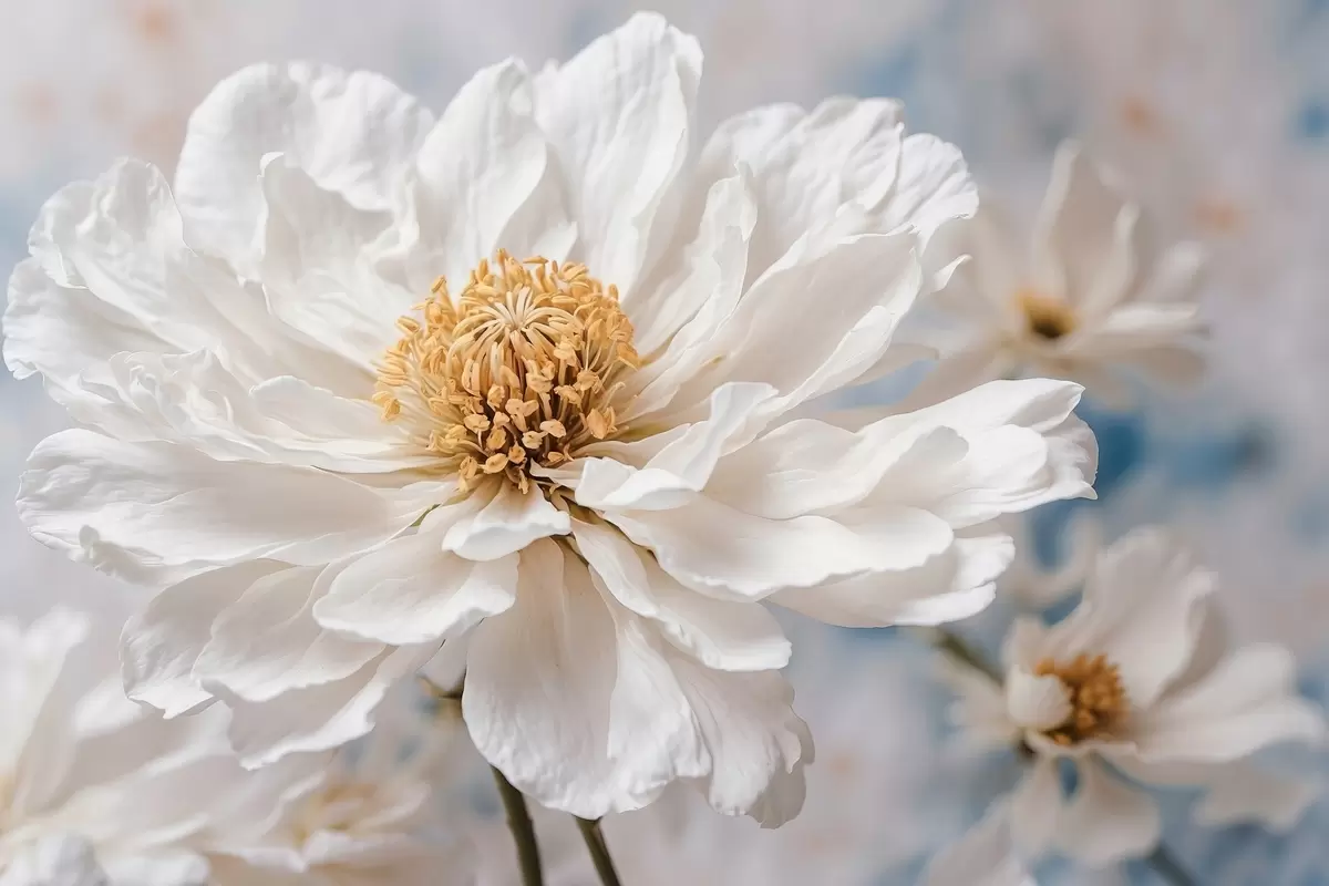 Plakat White flowef on bluffed backgfound f42925