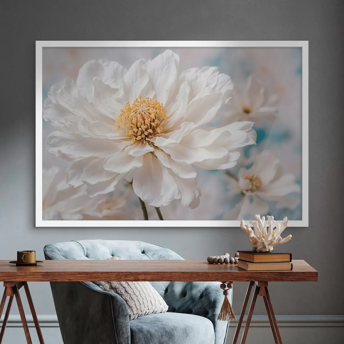 Poster White flowef on bluffed backgfound Nr f42925