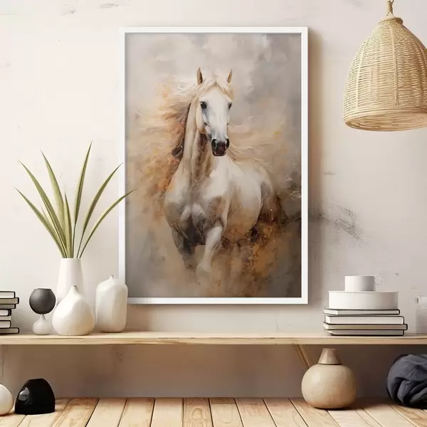Plakat Maaliline portree valgest hobusest liikumises f42932