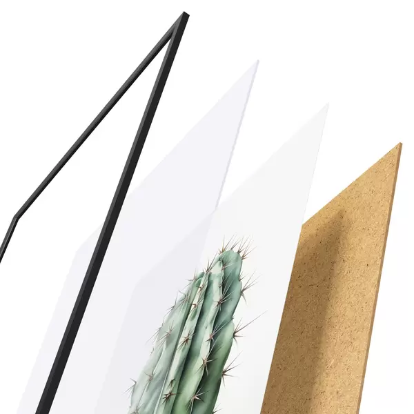 Plakat koosneb raamist, pleksiklaasist, trükitud pildist ja puitlaastplaadist alusplaadist. Tänu tagaküljel olevatele kinnitustele saab plakati kohe seinale riputada.