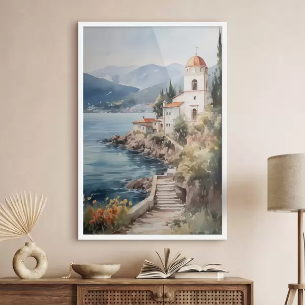 Poster Kirik mere ääres, taustaks mäed Nr f42962