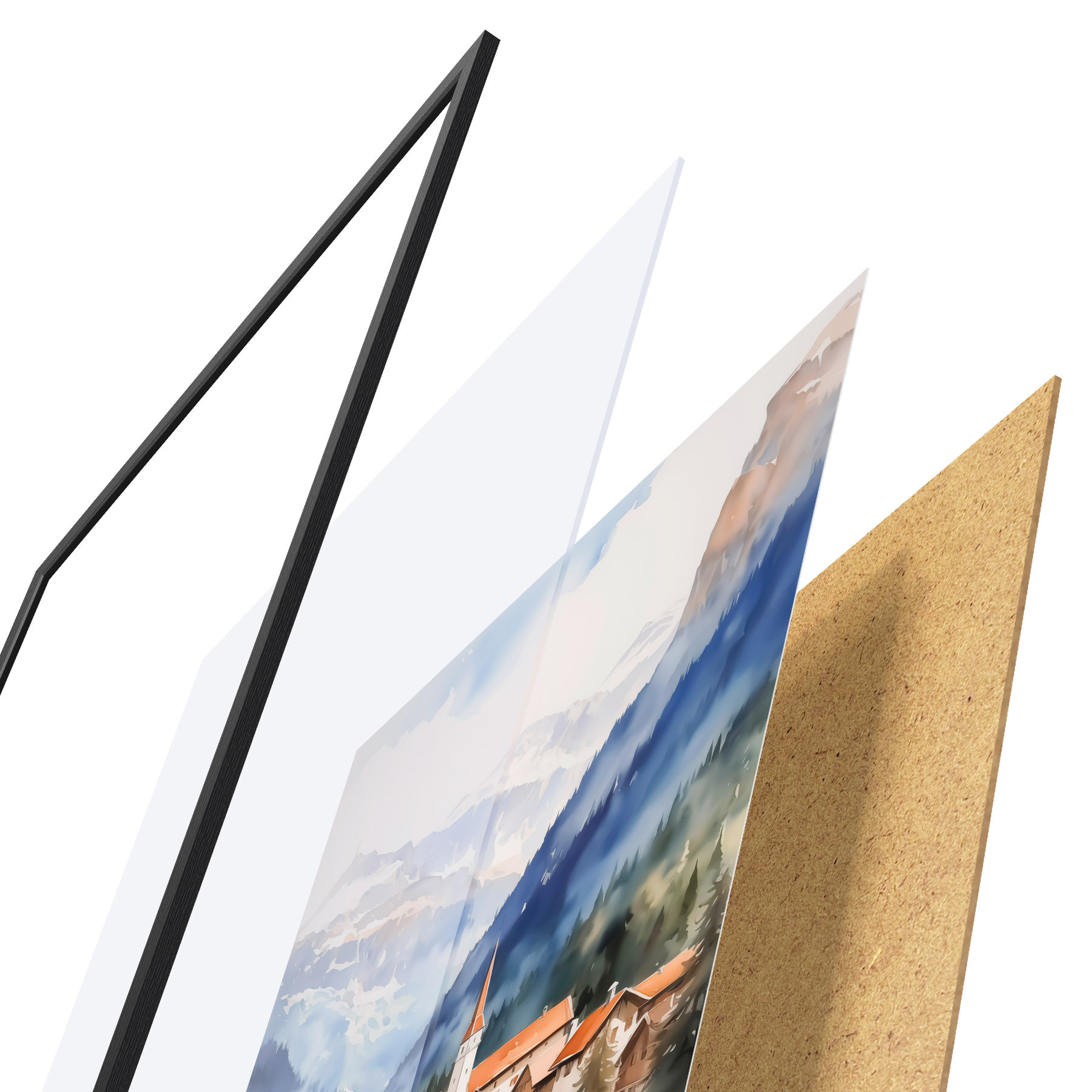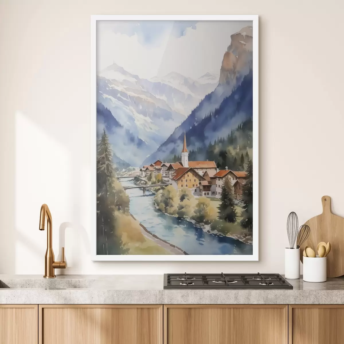 Plakat Küla lähedal mägedes imitatsioon akvarell f42964