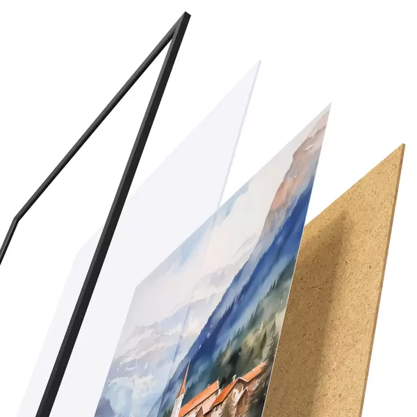 Plakat koosneb raamist, pleksiklaasist, trükitud pildist ja puitlaastplaadist alusplaadist. Tänu tagaküljel olevatele kinnitustele saab plakati kohe seinale riputada.