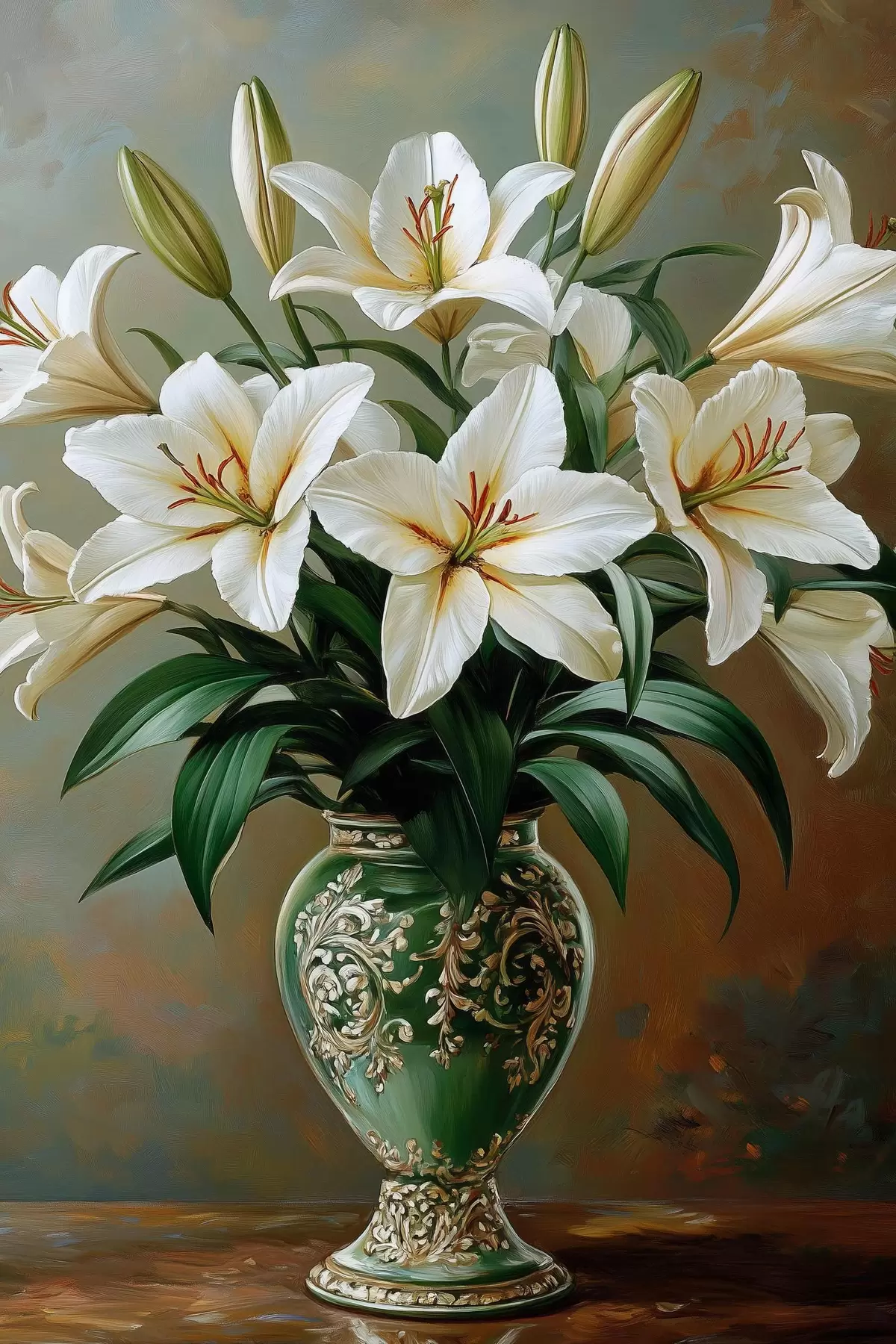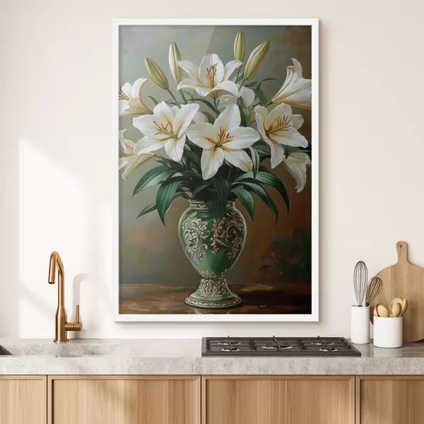 Poster Kimp valgeid lillioone vaasis Nr f42975