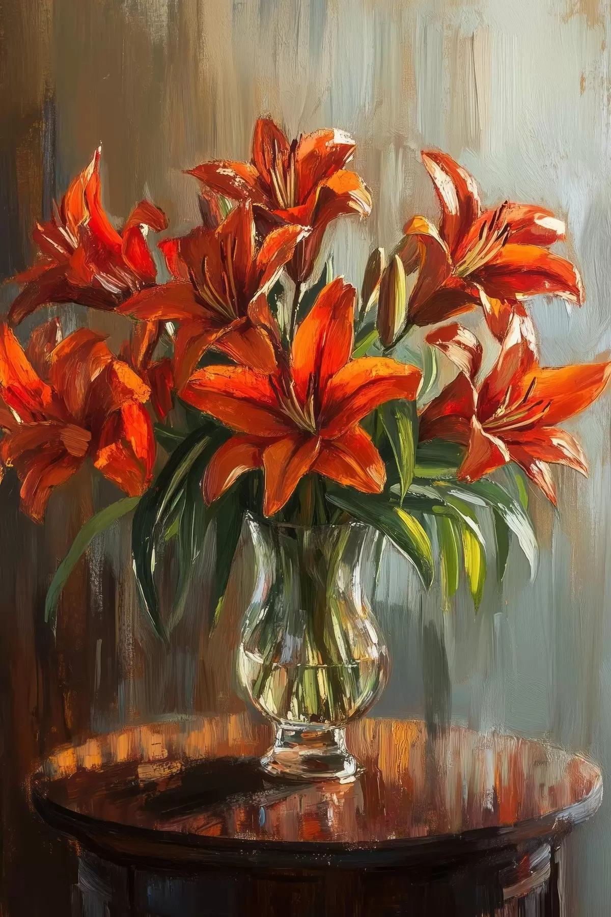 Plakat Punased liiliad õlivärvi stiilis f42977
