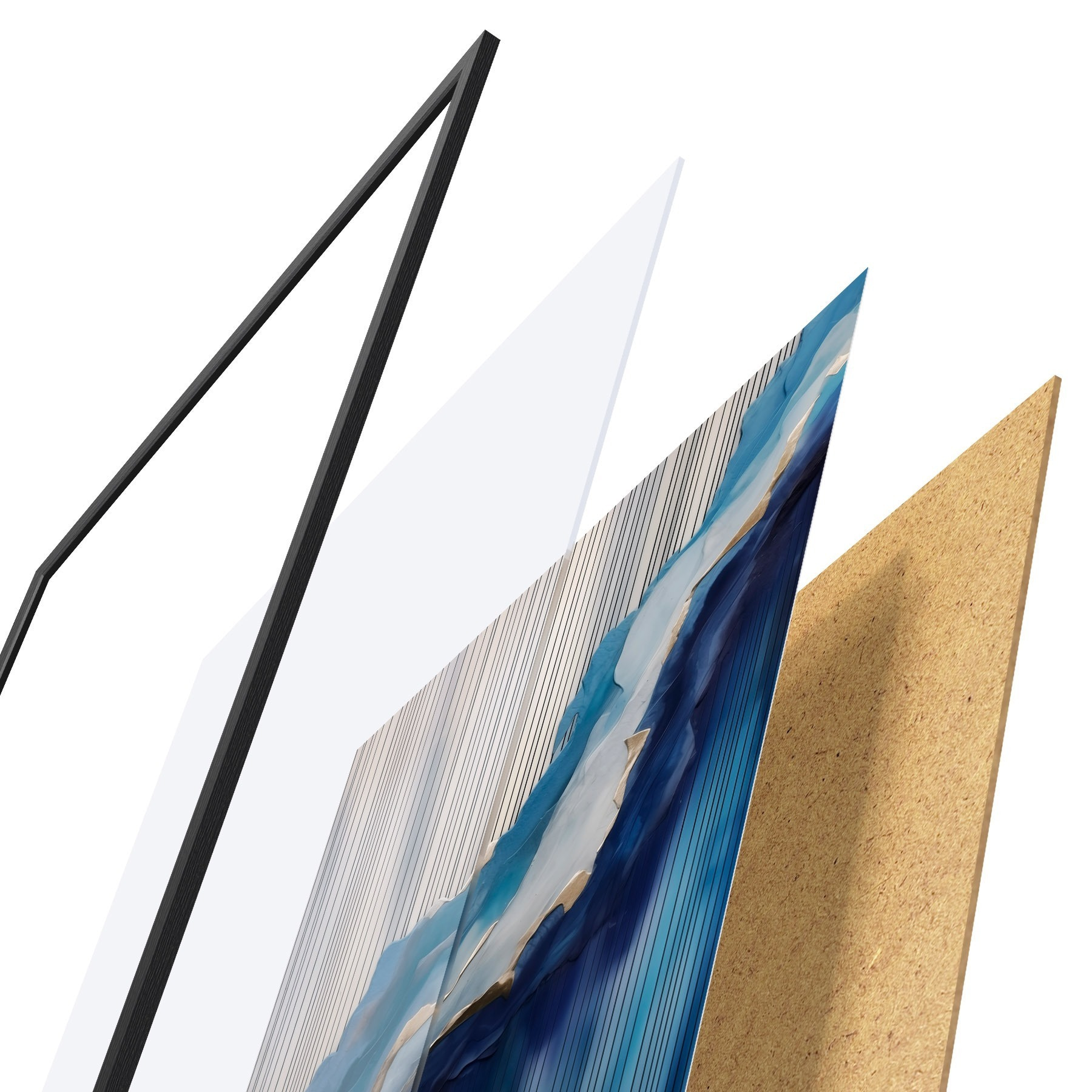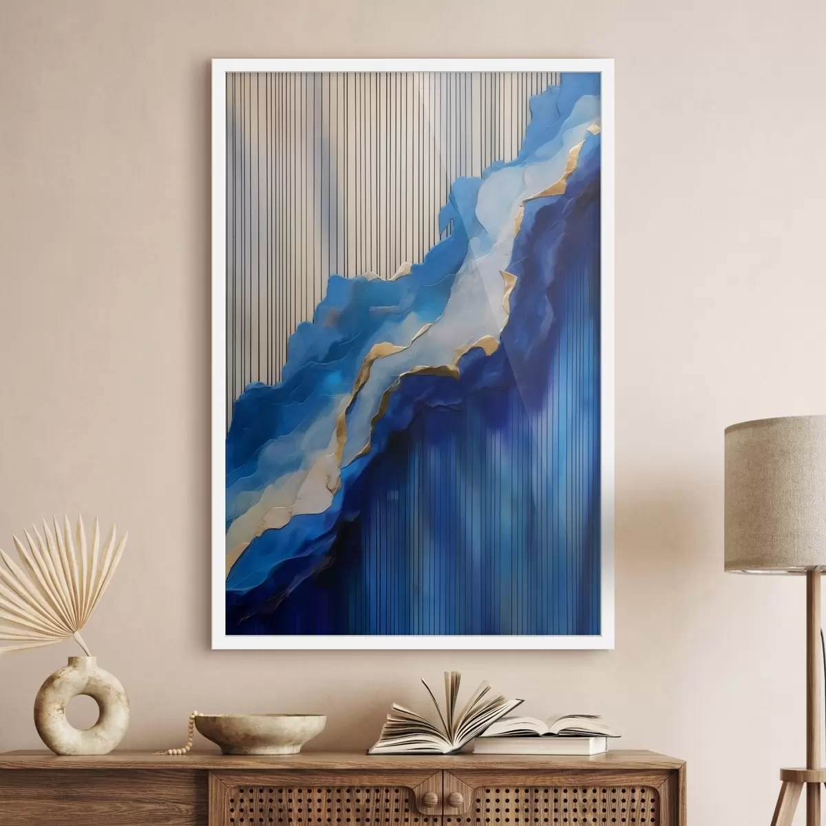 Plakat Abstraktsed sinised tekstuurid koos joontega taustal f43002