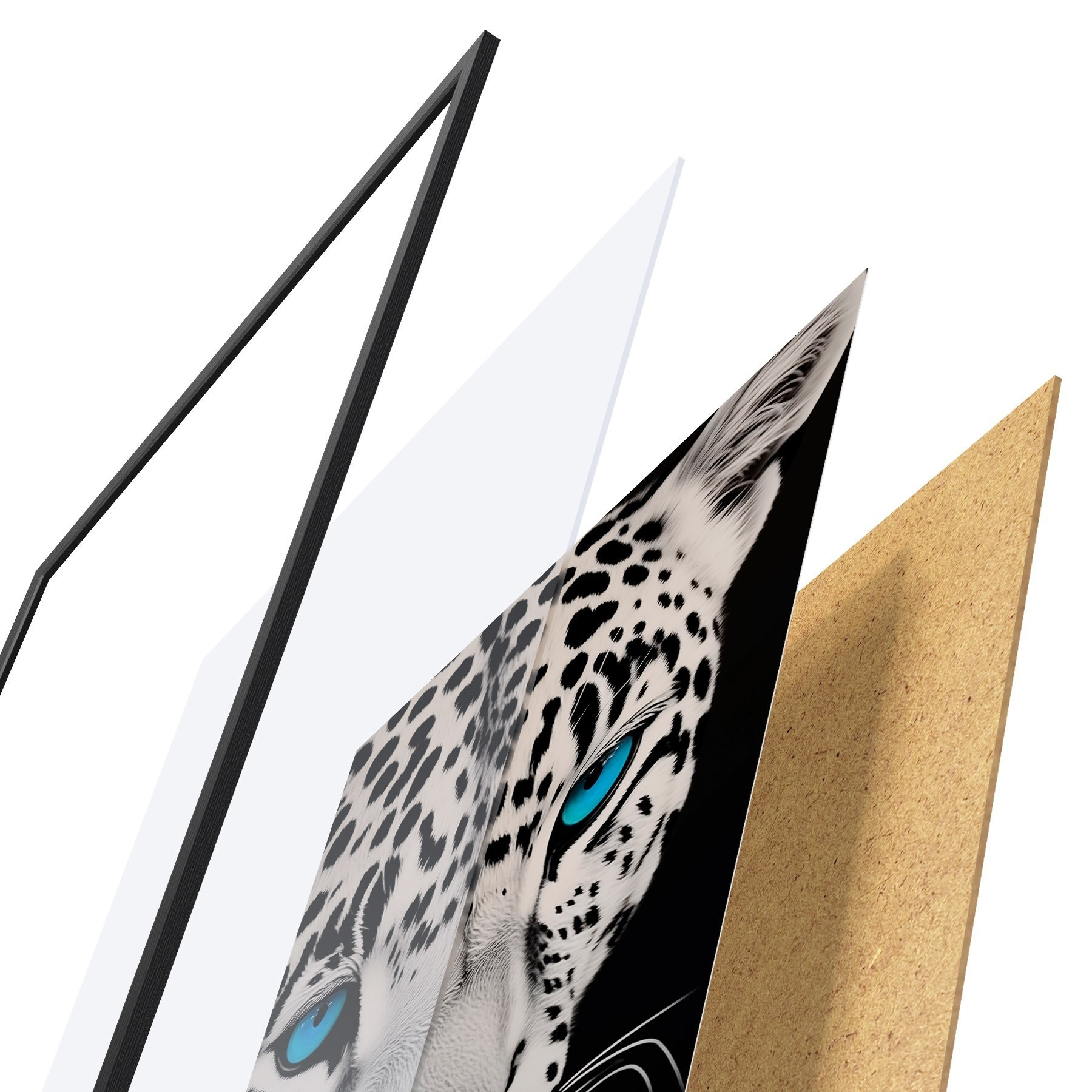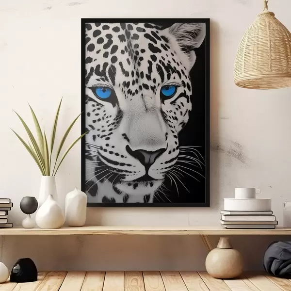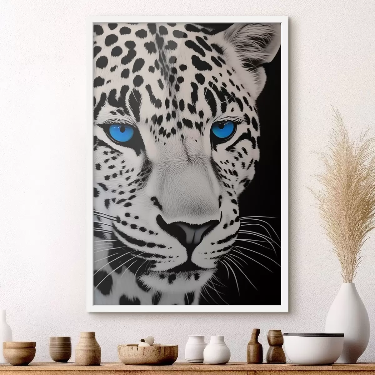 Poster Siniste silmadega leopardi must-valge portree Nr f43008