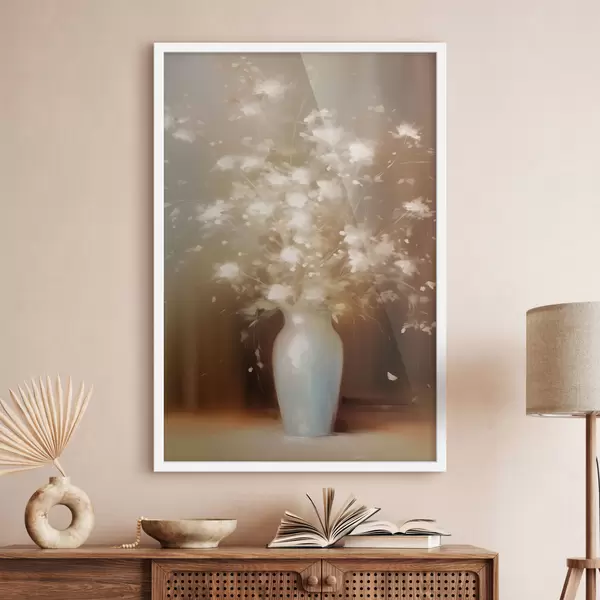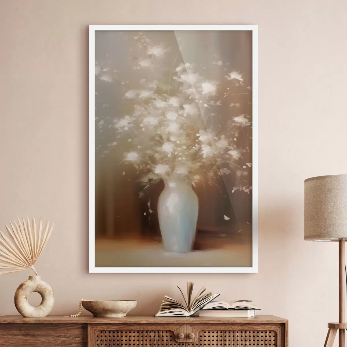 Poster Vasi valgete lilledega taimedega Nr f43039