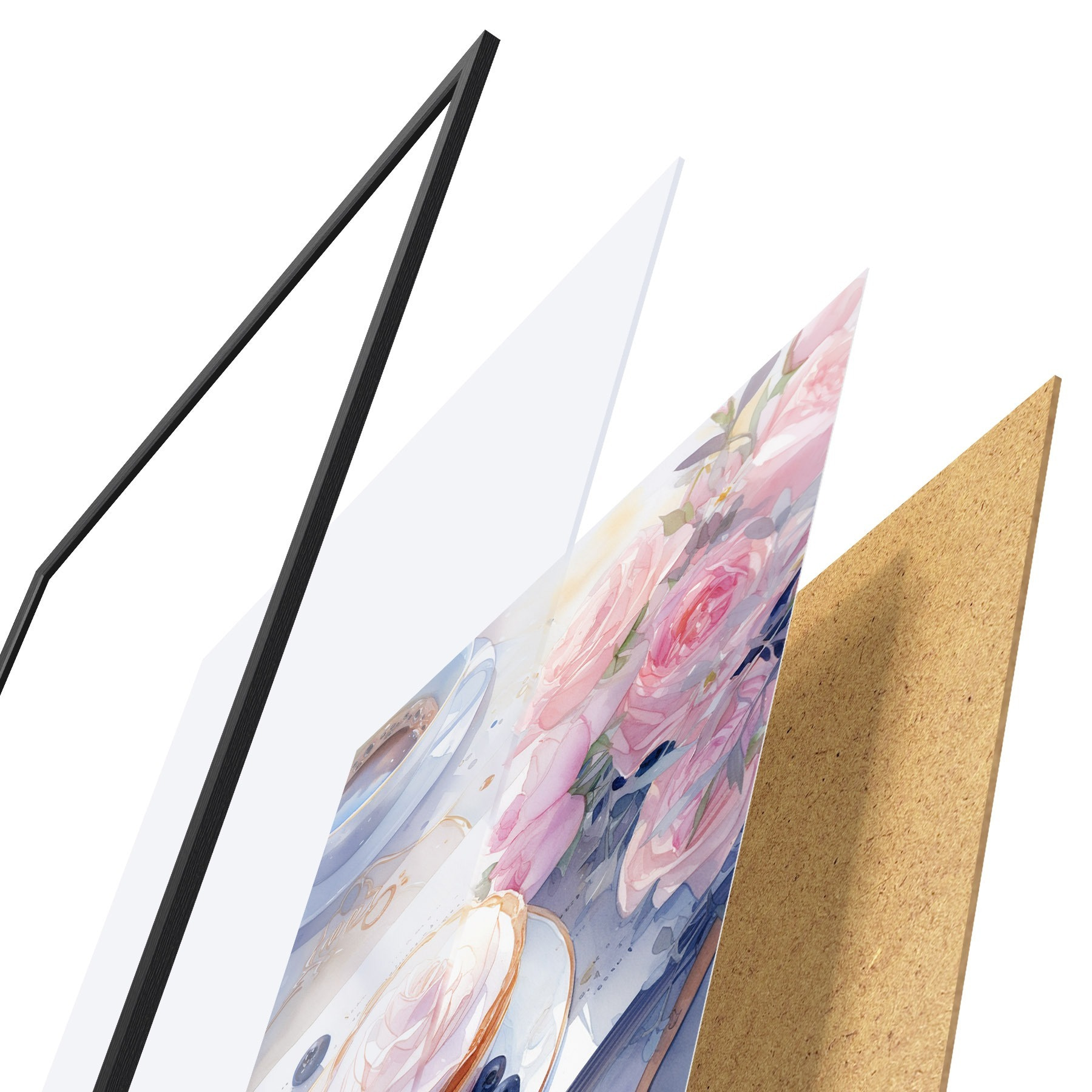 Poster Mustika tassikook, boho stiil, akvarell, roosad roosid, poeetiline Nr f43053
