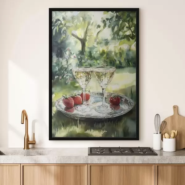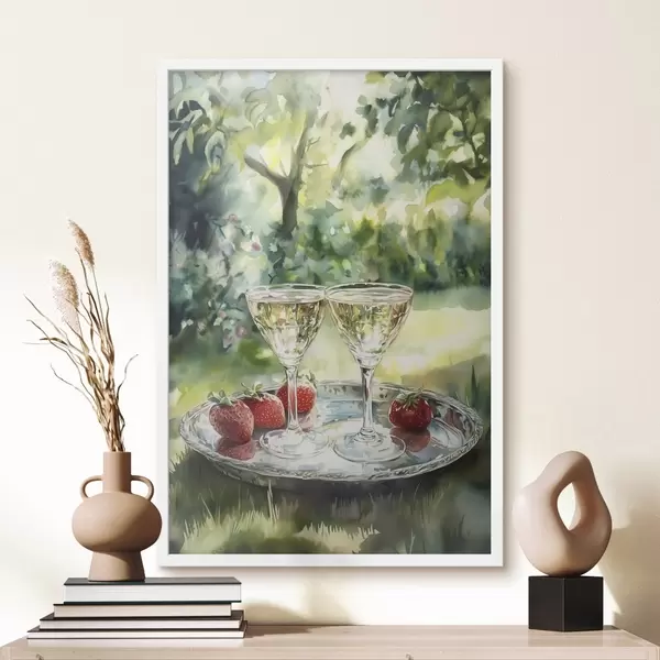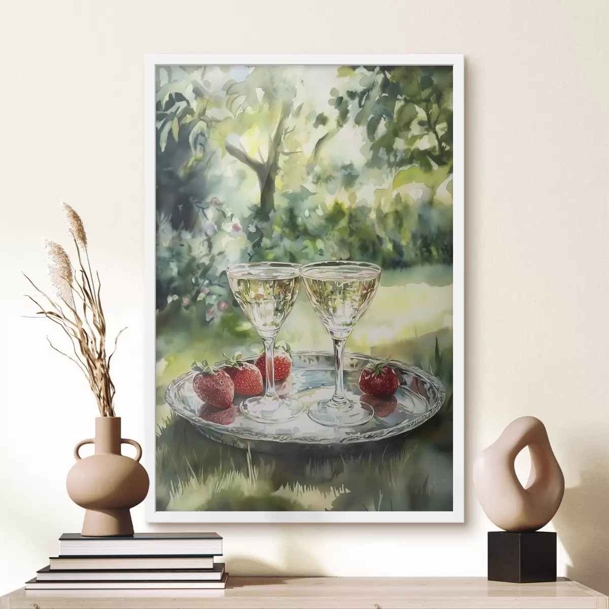 Poster Suvine piknik šampanja ja maasikatega, akvarellistiilis joonistus Nr f43055
