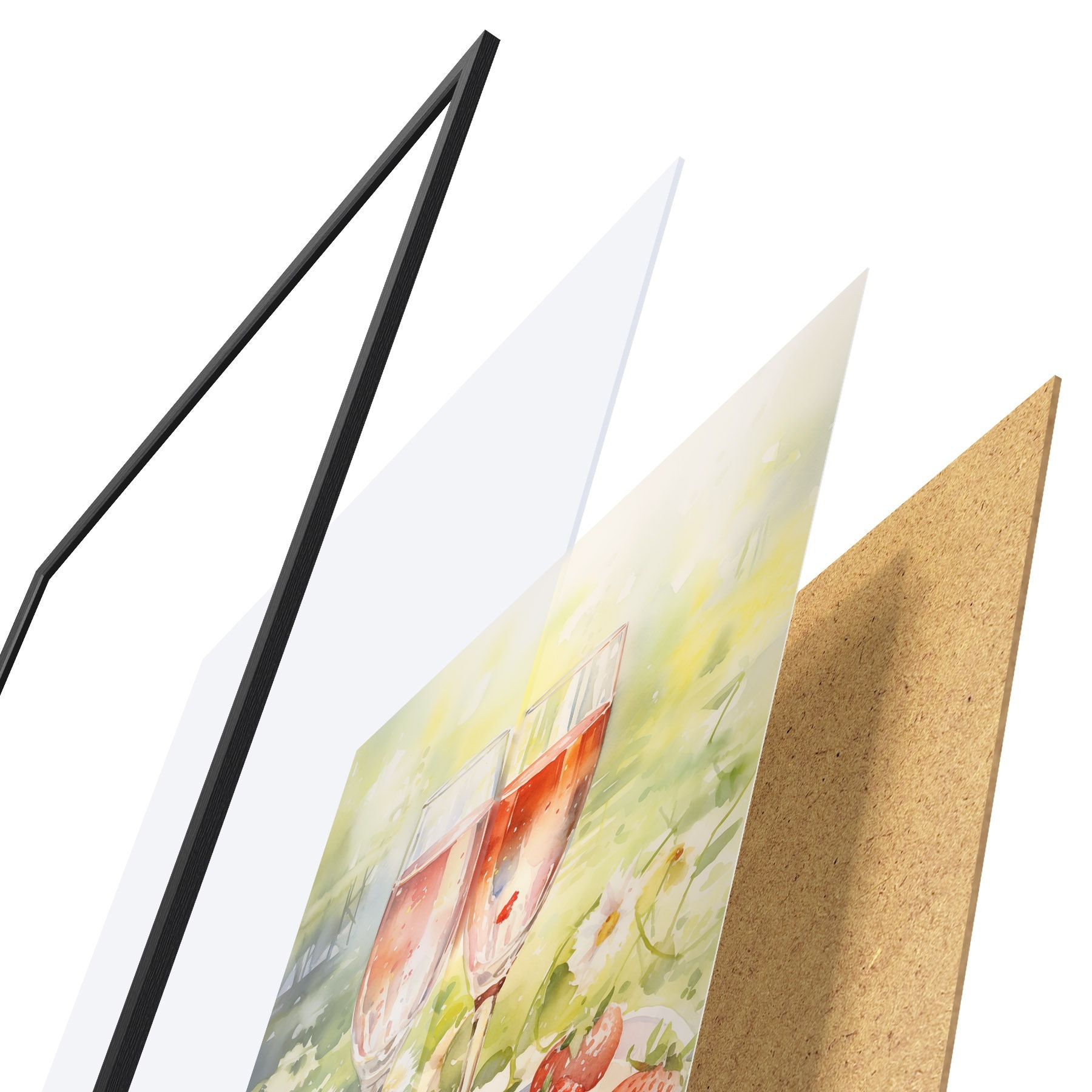 Plakat Šampanjaklaaside, lillede ja maasikate akvarellistiilis joonistus f43056