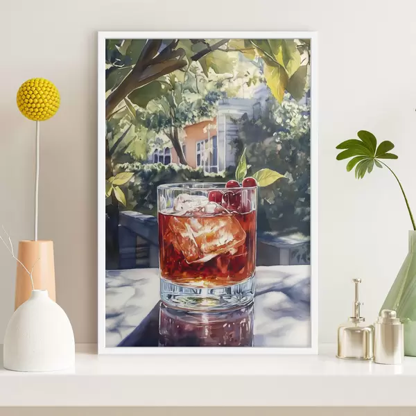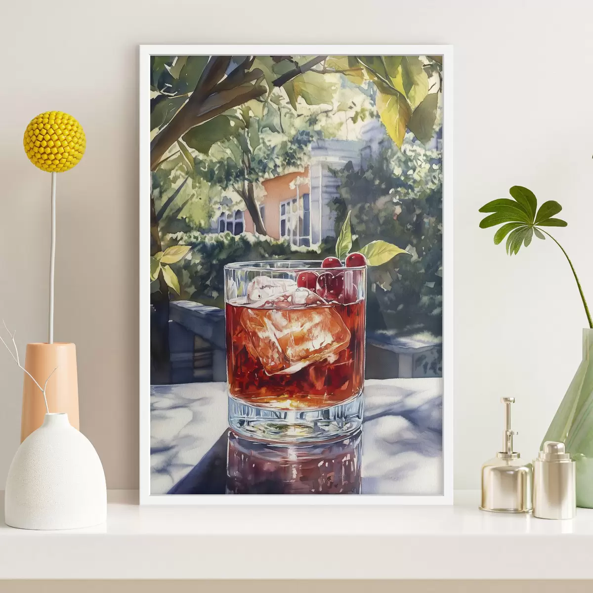 Poster Kokteil marjadega, akvarellistiil, esteetiline linn, suvine loodus Nr f43059