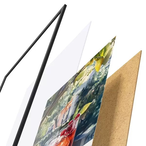 Plakat koosneb raamist, pleksiklaasist, trükitud pildist ja puitlaastplaadist alusplaadist. Tänu tagaküljel olevatele kinnitustele saab plakati kohe seinale riputada.