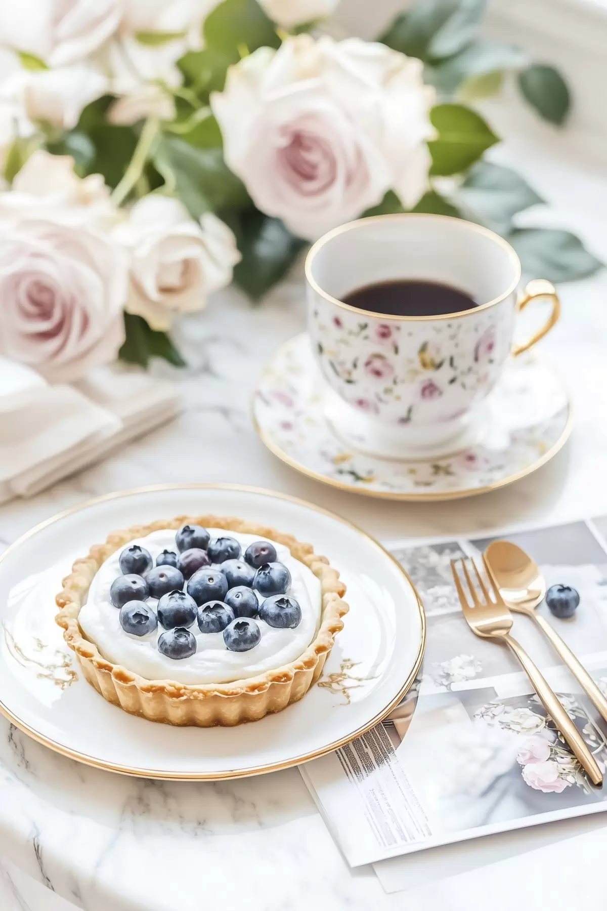 Plakat Mustikakook tassikese teega, boho stiilis, roosad roosid roosid f43066