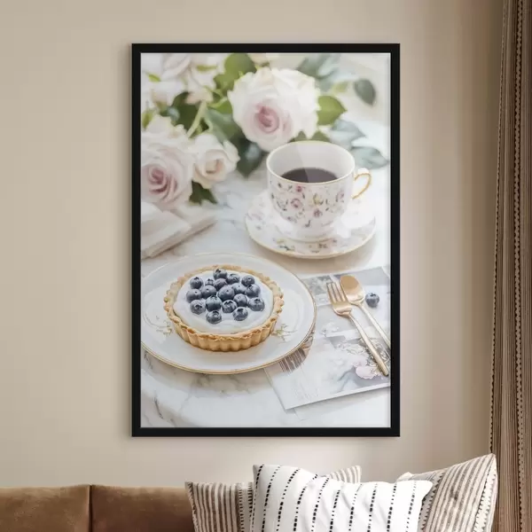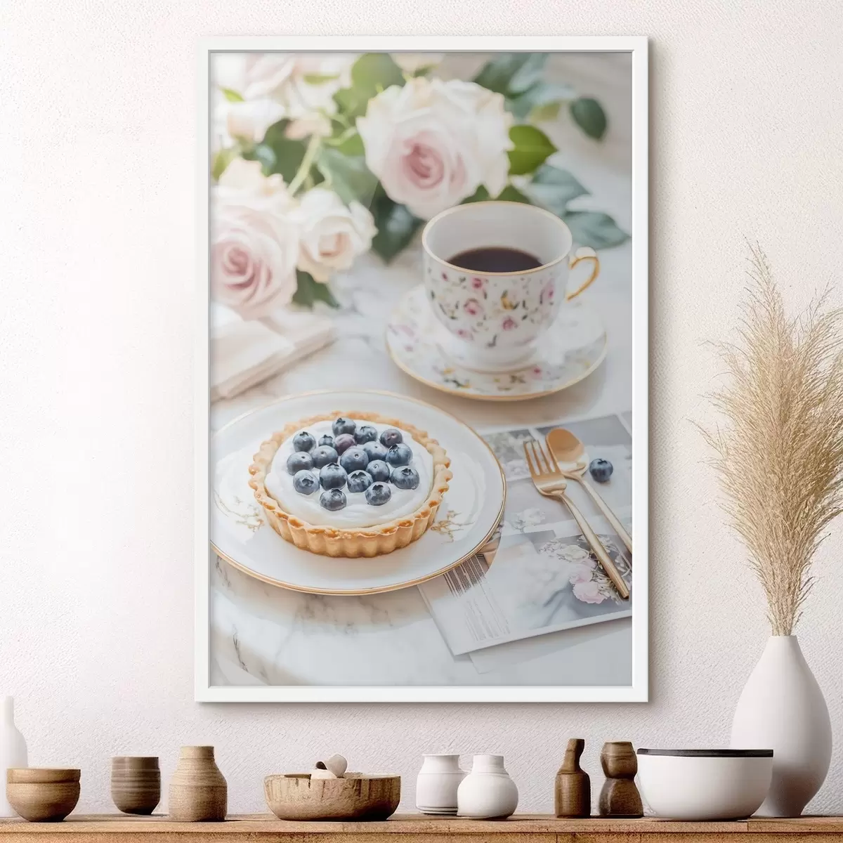 Poster Mustikakook tassikese teega, boho stiilis, roosad roosid roosid Nr f43066