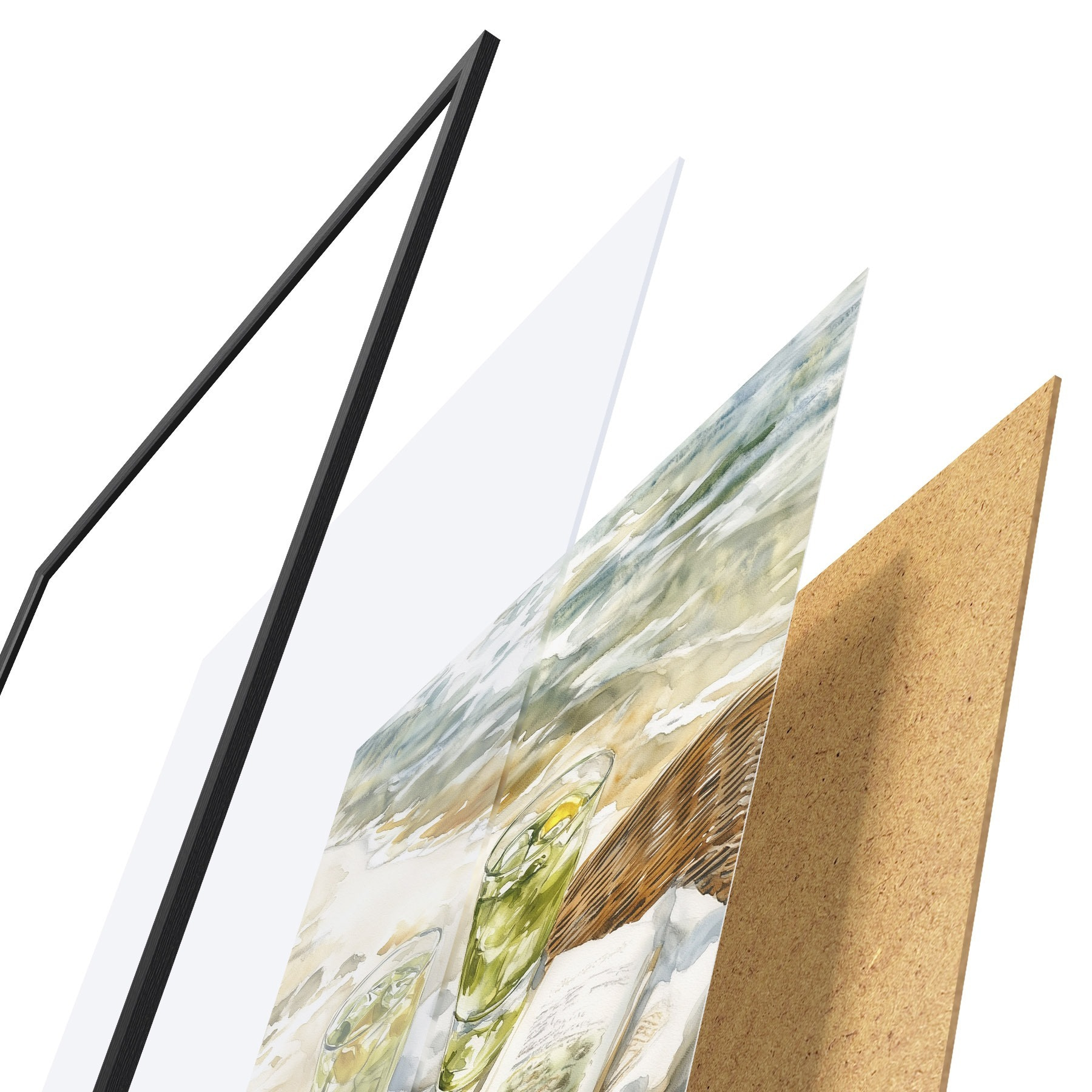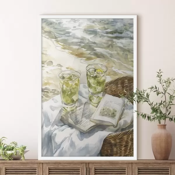 Poster Piknik mere ääres, suvised kokteilid, luule, akvarellistiil Nr f43068