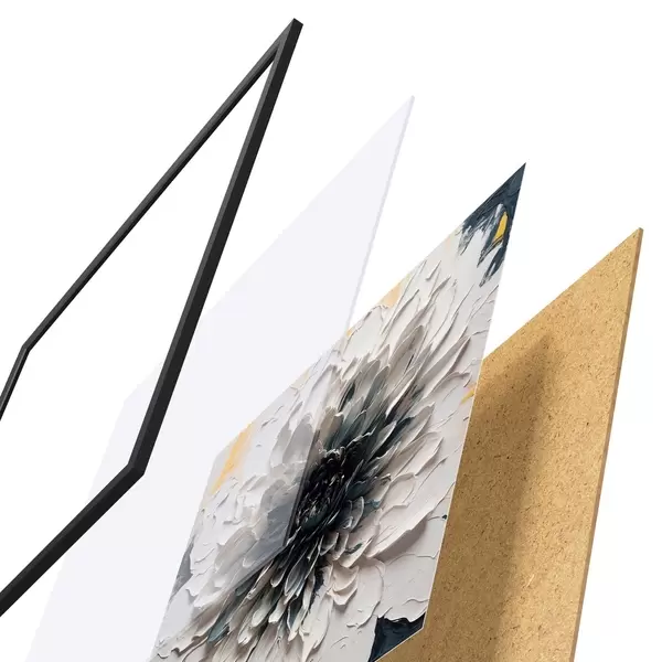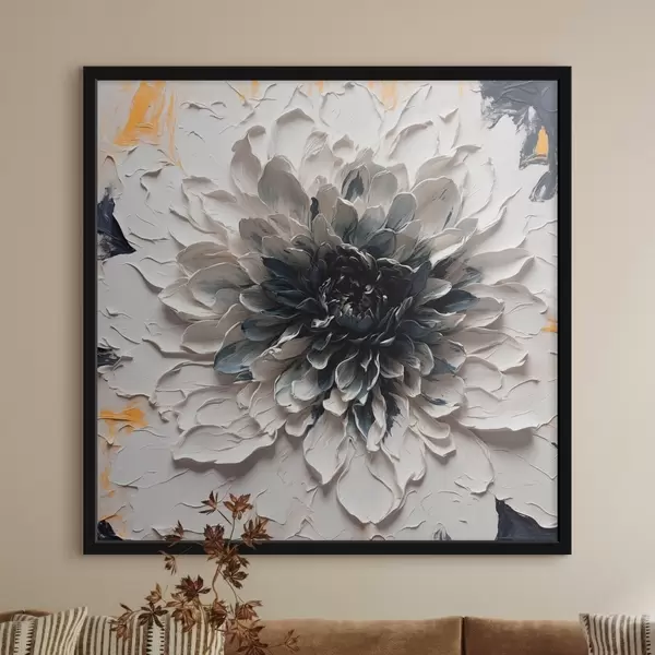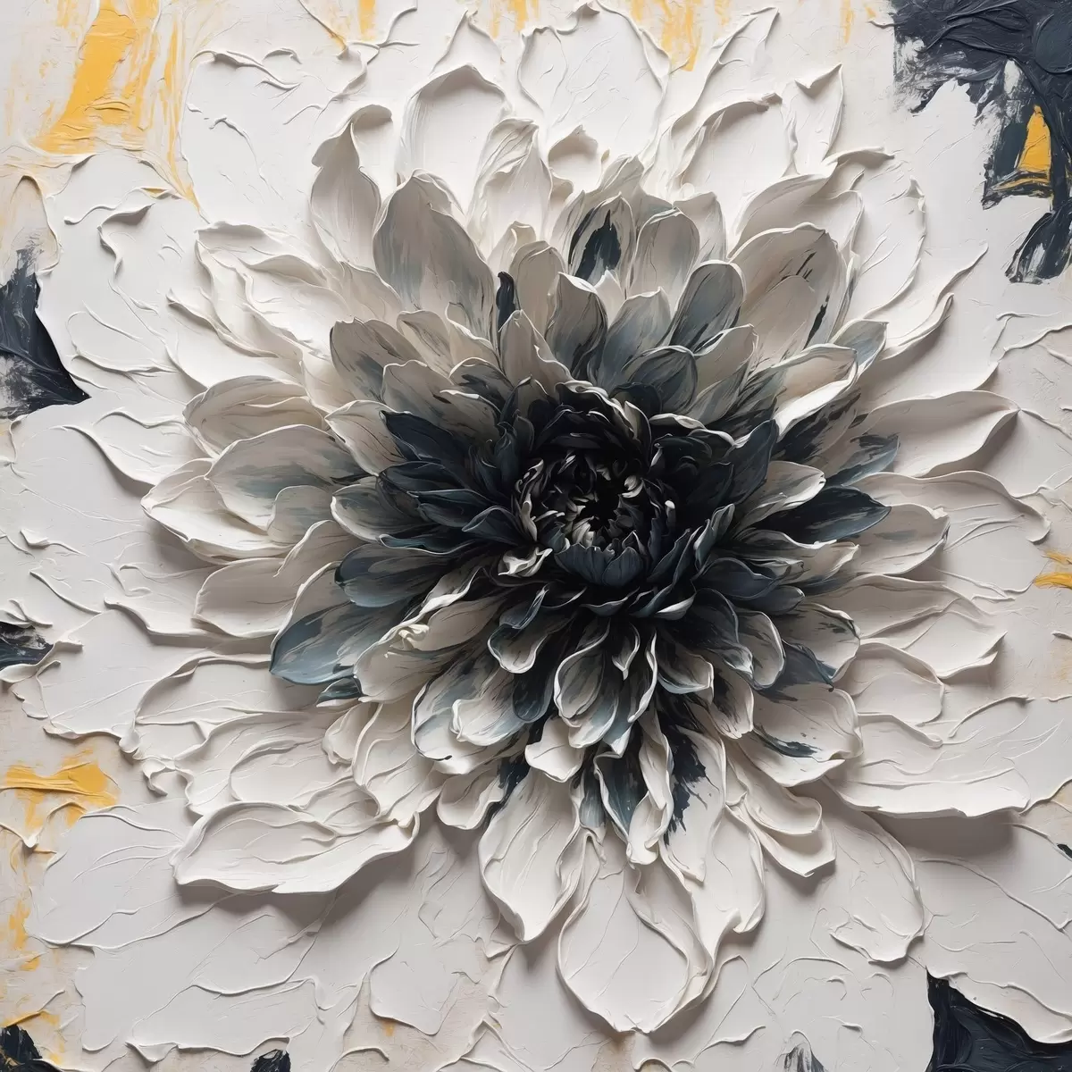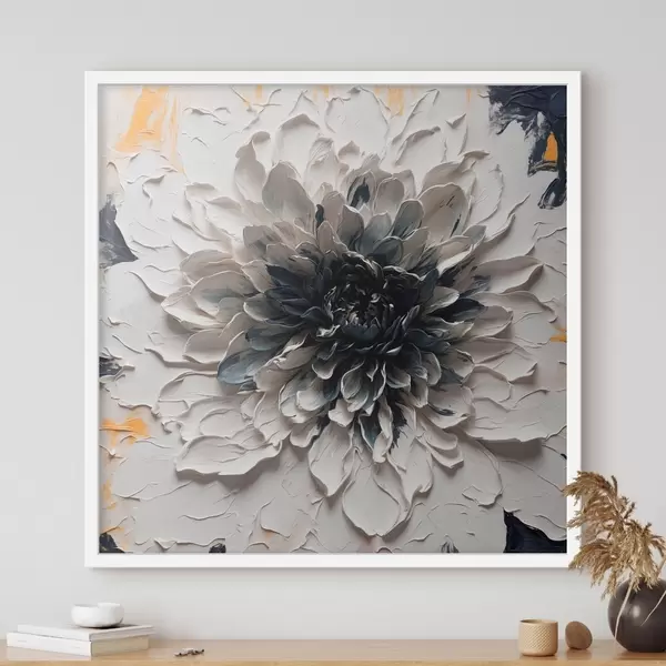 Plakat Valge lill musta keskel õlimaal stiilis f43113