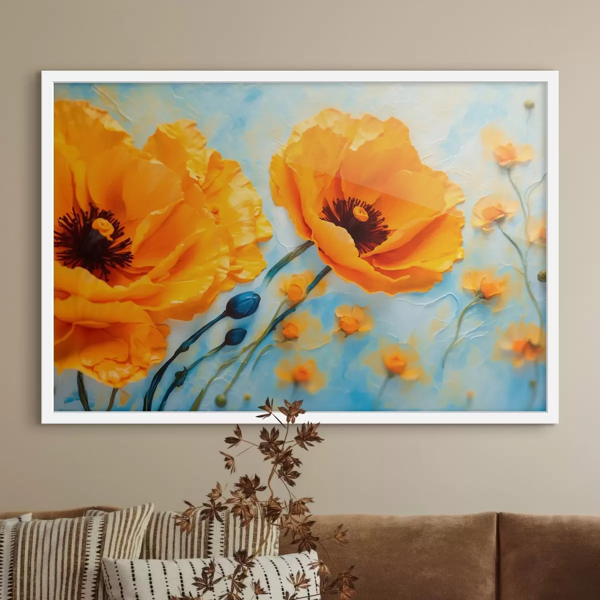 Me müüme pilte kanderaamidel - see on puidust raam, millele lõuend on pingutatud. Seda pilti ei ole vaja raamida, seda võib riputada otse seinale.