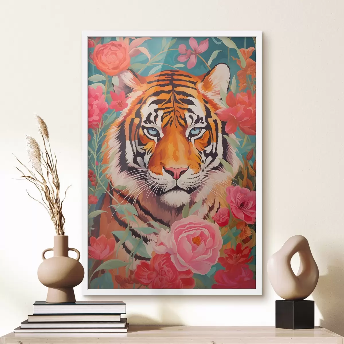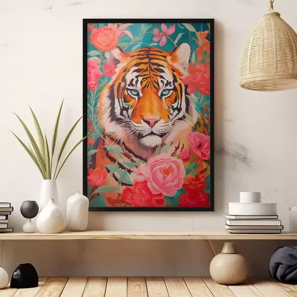 Poster Tiigri lummav pilk keset elavat roosi Nr f43132