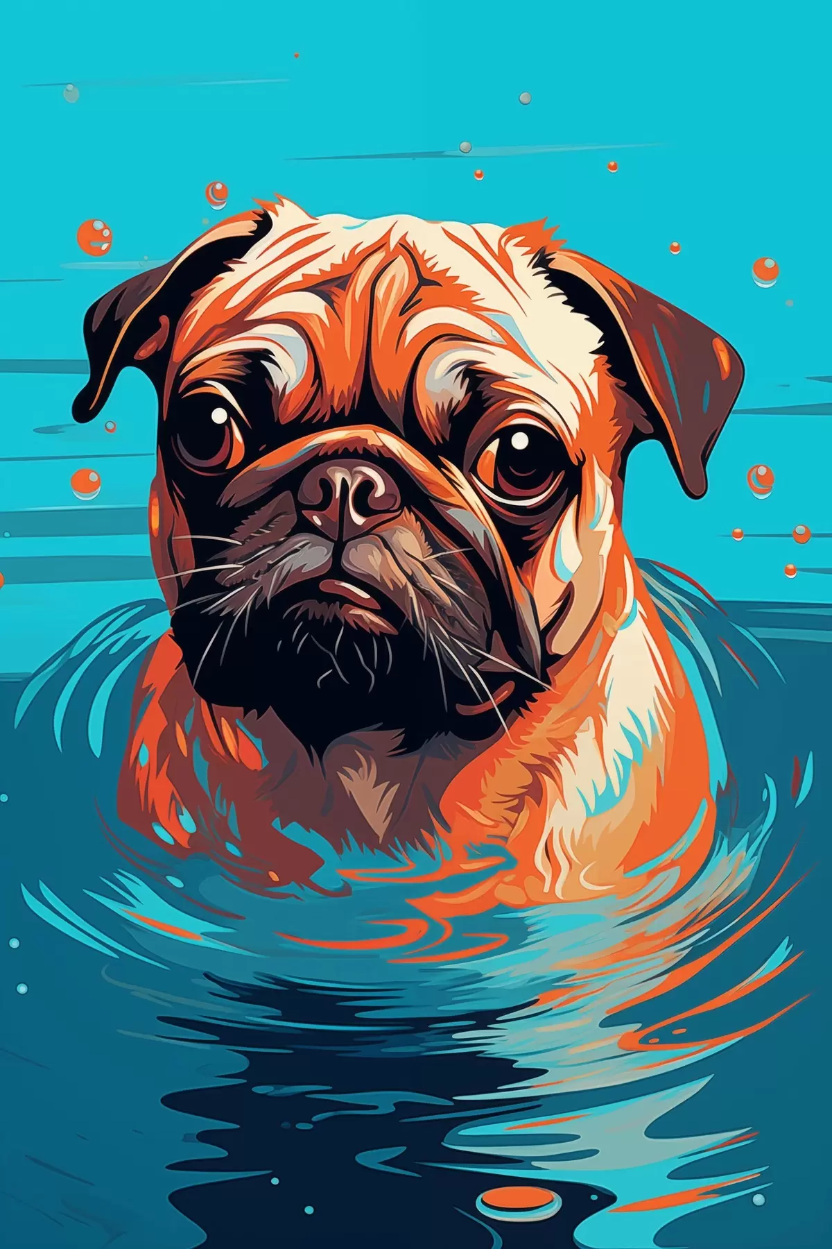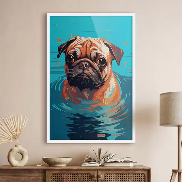 Plakat Stiliseeritud portree mopsist vees, millel on väljendusrikas pilk f43136