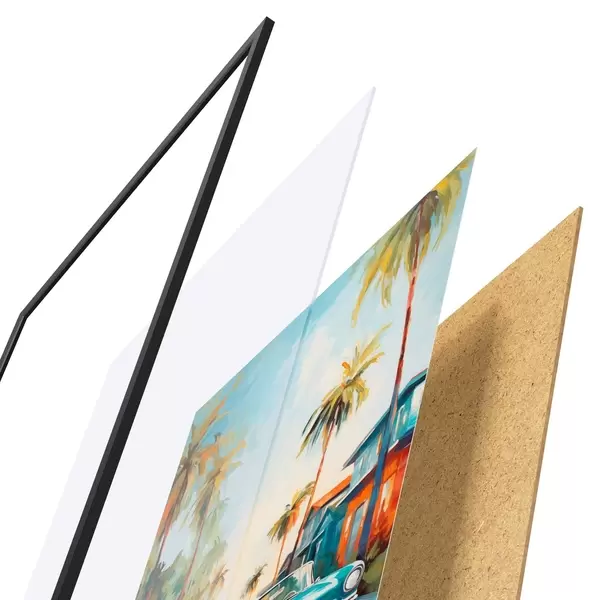 Plakat koosneb raamist, pleksiklaasist, trükitud pildist ja puitlaastplaadist alusplaadist. Tänu tagaküljel olevatele kinnitustele saab plakati kohe seinale riputada.