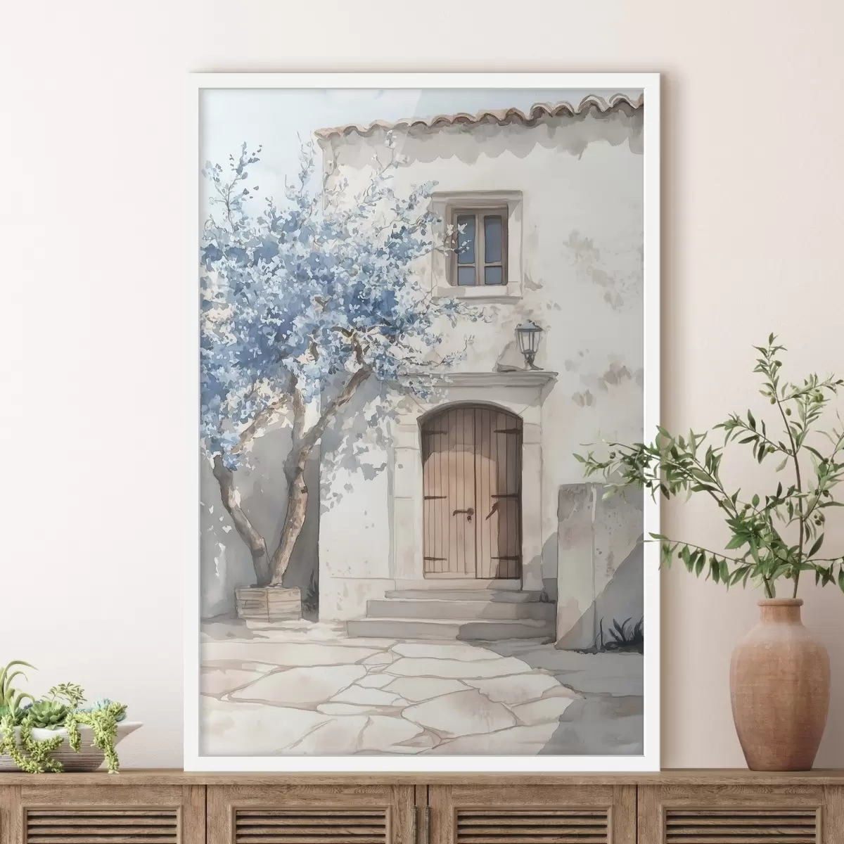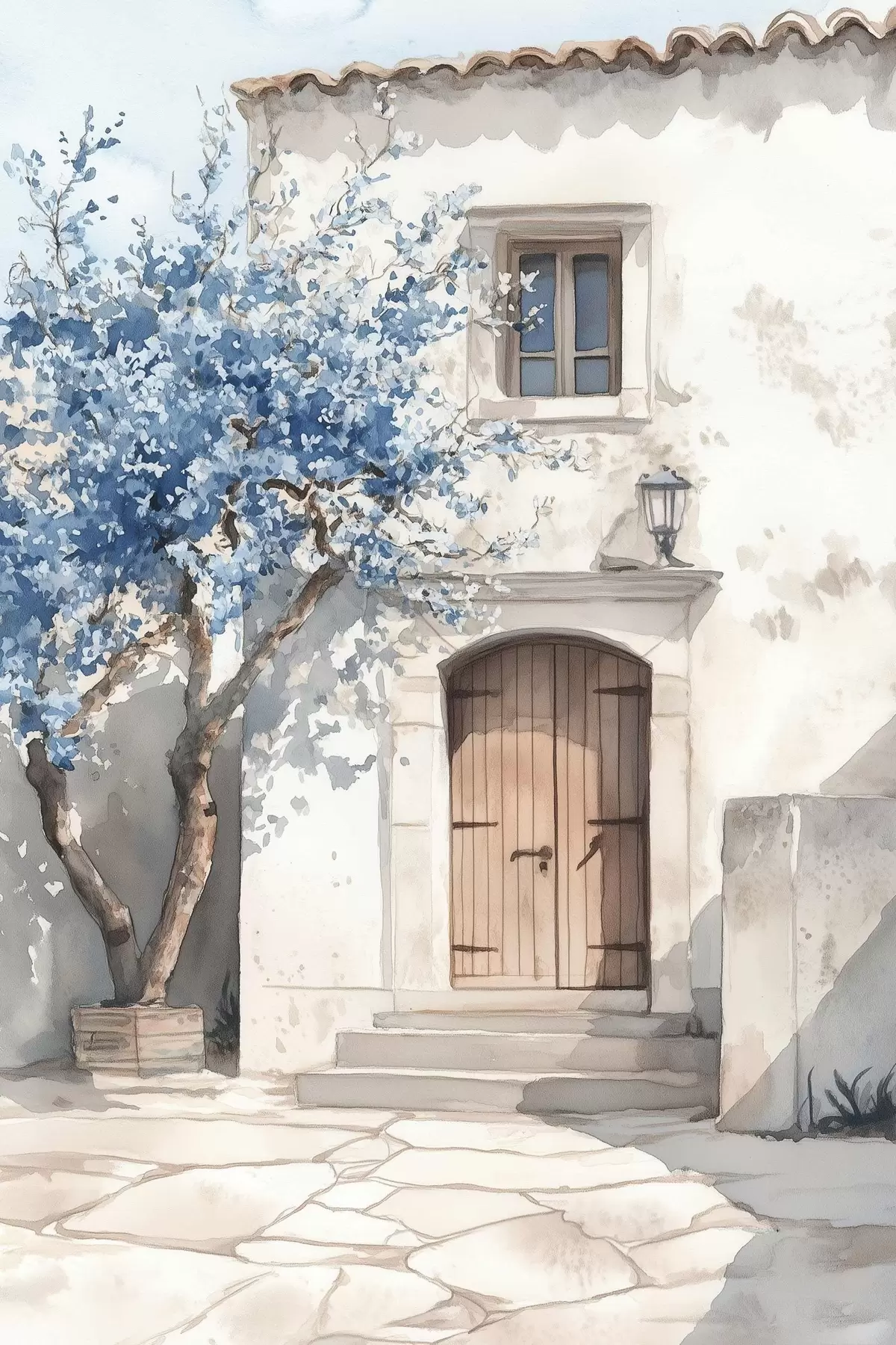 Plakat Kreeka maja ilusa puu, arhitektuur, akvarellstiilis f43178