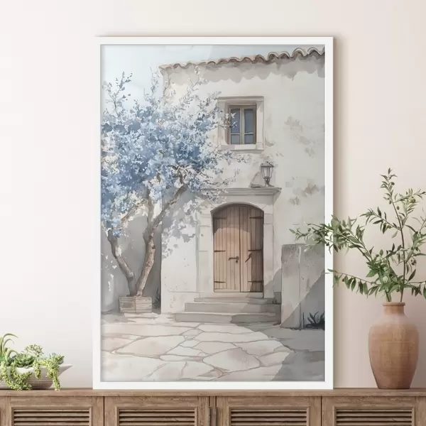 Poster Kreeka maja ilusa puu, arhitektuur, akvarellstiilis Nr f43178