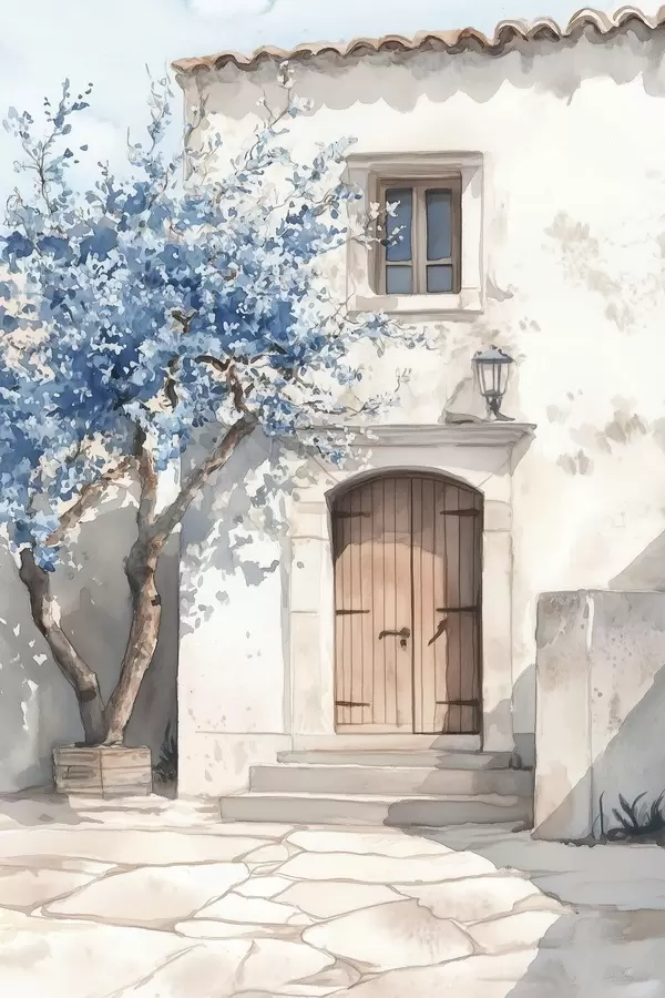 Poster Kreeka maja ilusa puu, arhitektuur, akvarellstiilis Nr f43178