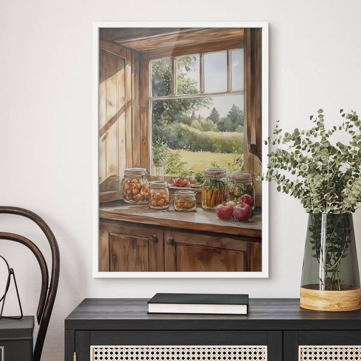 Plakat Külaesteetika, puitmaja, suvine loodus, köögiviljad, akvarellstiil f43185