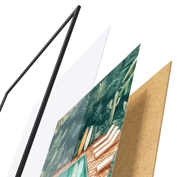 Plakat koosneb raamist, pleksiklaasist, trükitud pildist ja puitlaastplaadist alusplaadist. Tänu tagaküljel olevatele kinnitustele saab plakati kohe seinale riputada.