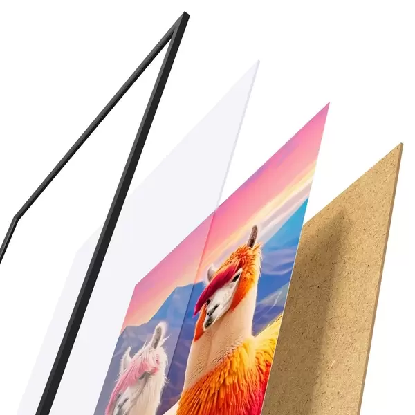 Plakat koosneb raamist, pleksiklaasist, trükitud pildist ja puitlaastplaadist alusplaadist. Tänu tagaküljel olevatele kinnitustele saab plakati kohe seinale riputada.