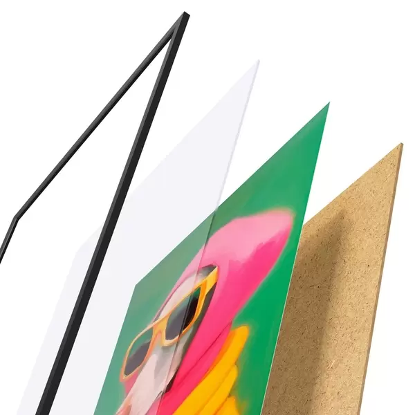 Plakat koosneb raamist, pleksiklaasist, trükitud pildist ja puitlaastplaadist alusplaadist. Tänu tagaküljel olevatele kinnitustele saab plakati kohe seinale riputada.