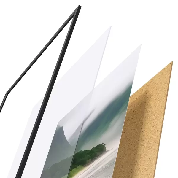 Plakat koosneb raamist, pleksiklaasist, trükitud pildist ja puitlaastplaadist alusplaadist. Tänu tagaküljel olevatele kinnitustele saab plakati kohe seinale riputada.