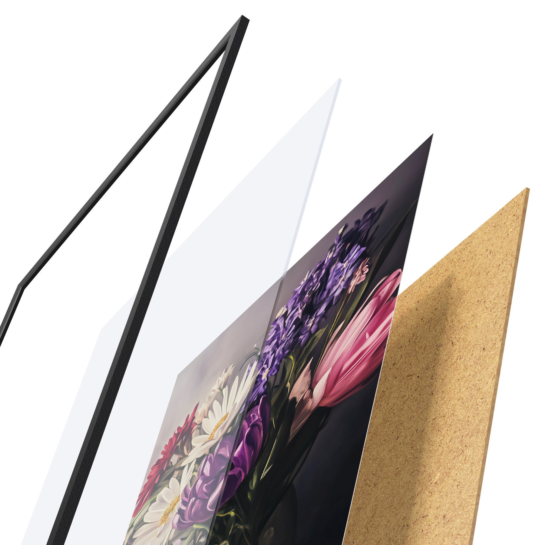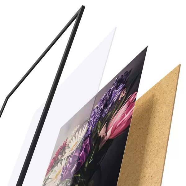 Plakat koosneb raamist, pleksiklaasist, trükitud pildist ja puitlaastplaadist alusplaadist. Tänu tagaküljel olevatele kinnitustele saab plakati kohe seinale riputada.