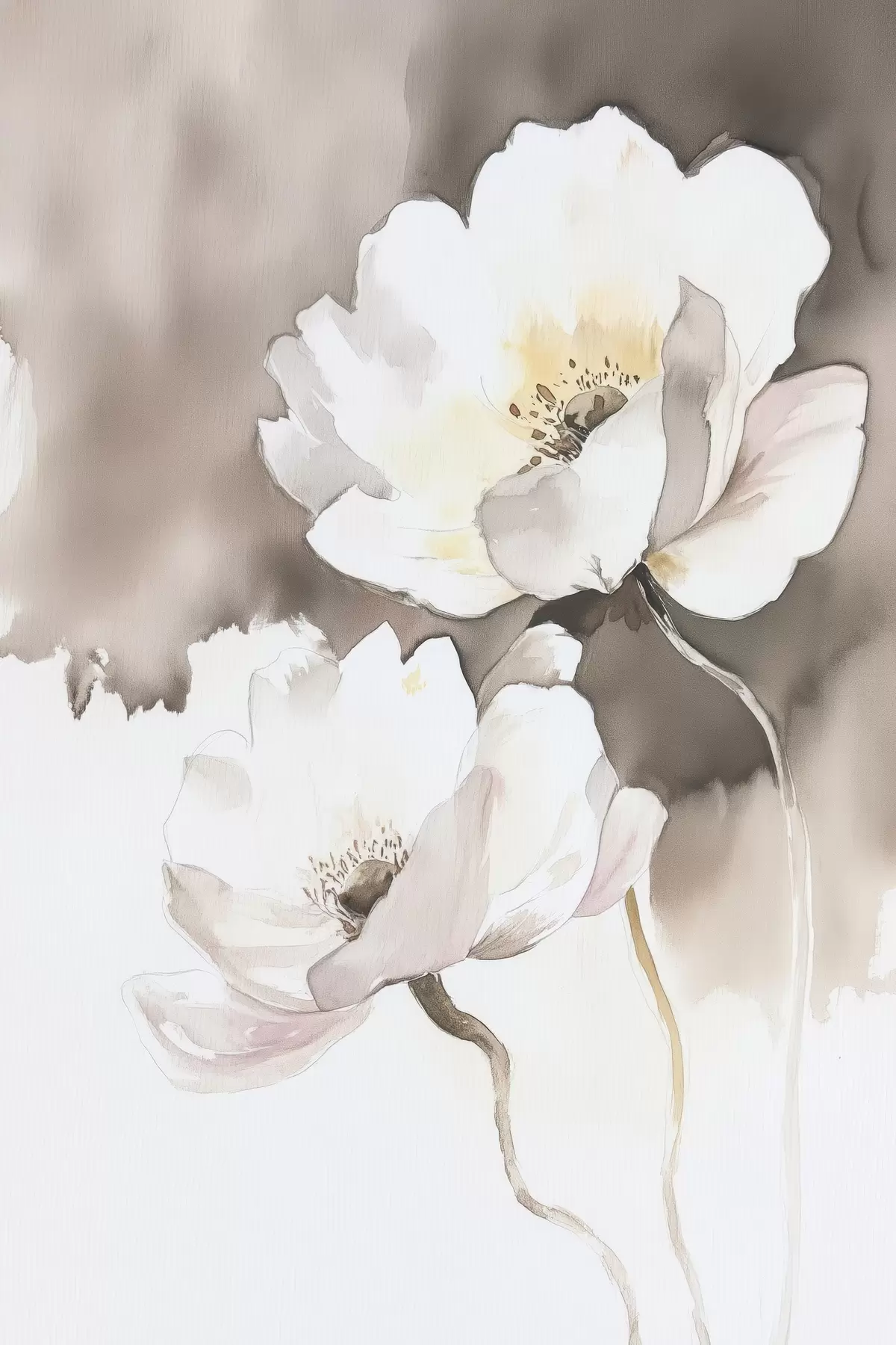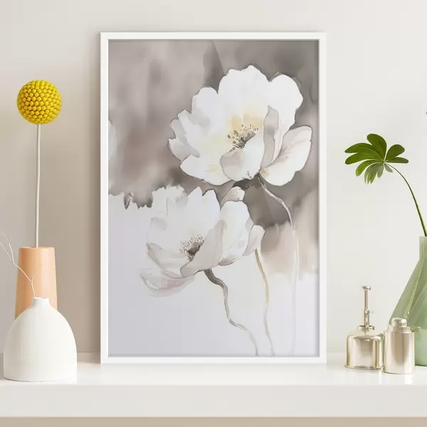 Plakat Valged lilled pruunil taustal akvarellvärvi stiilis f43297