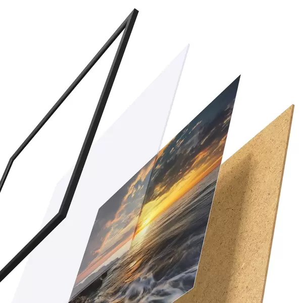 Plakat koosneb raamist, pleksiklaasist, trükitud pildist ja puitlaastplaadist alusplaadist. Tänu tagaküljel olevatele kinnitustele saab plakati kohe seinale riputada.