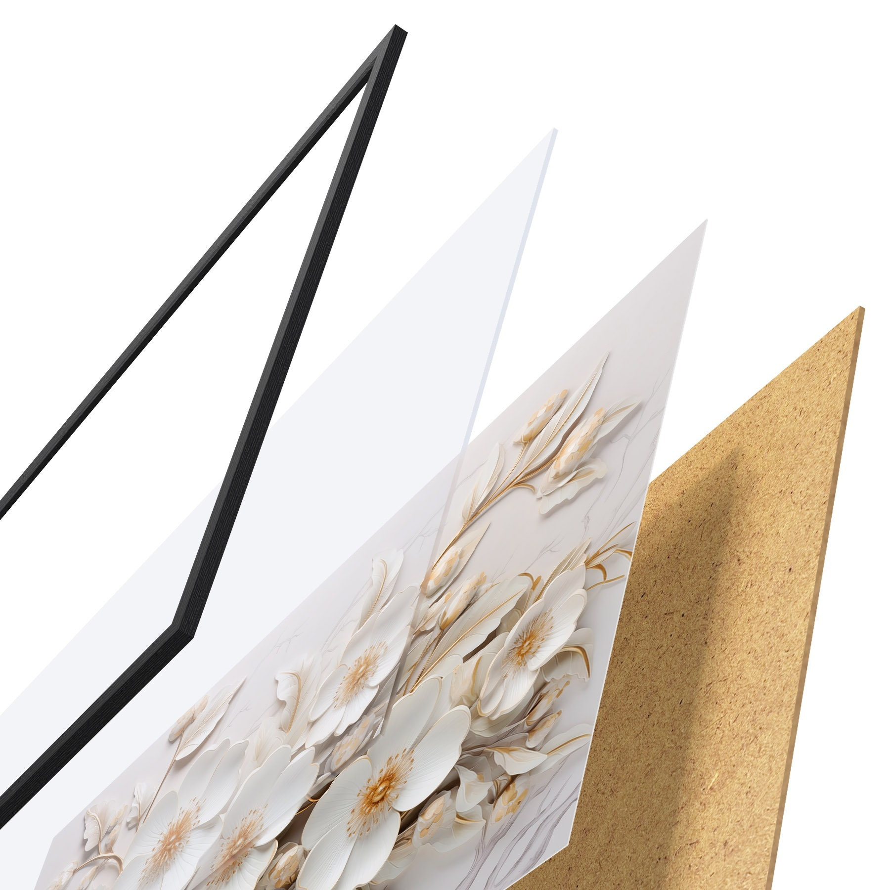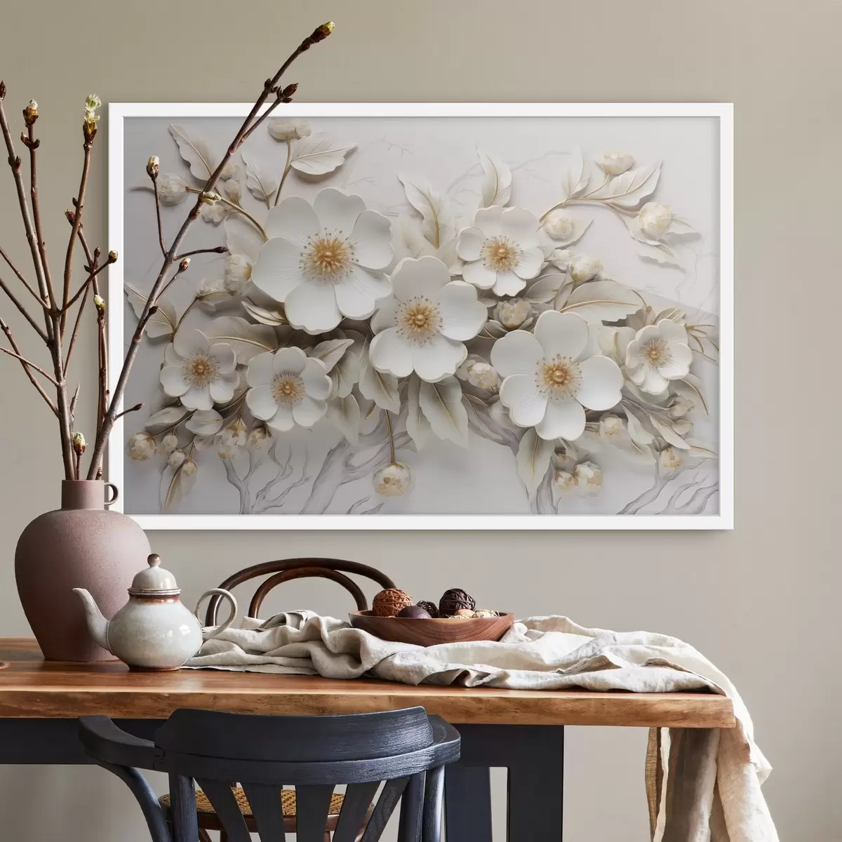 Poster 3D valged lilled klassikalises stiilis kollase aktsendiga Nr f43313