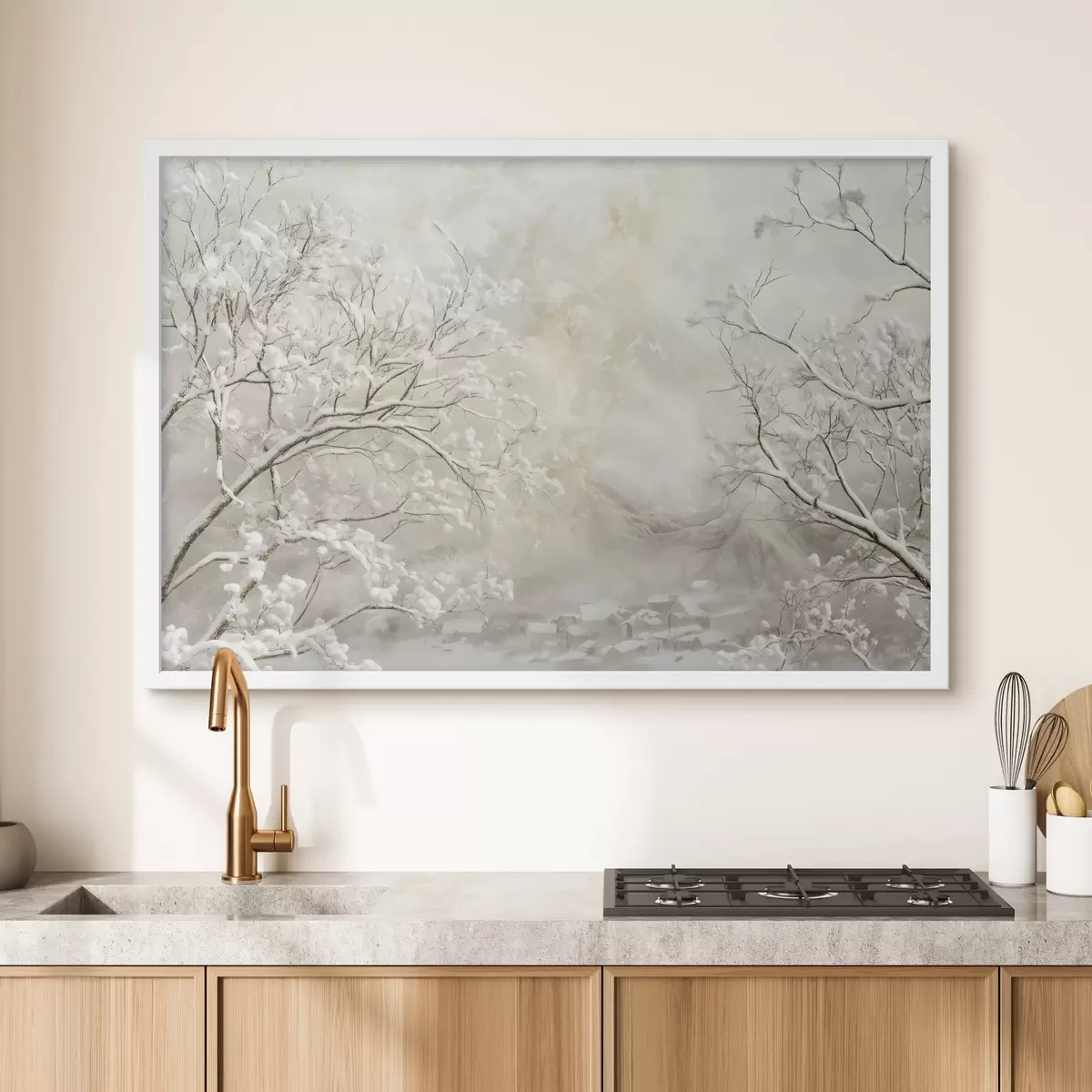 Poster Talvised oksad koos lumega talveküla taustal Nr f43321
