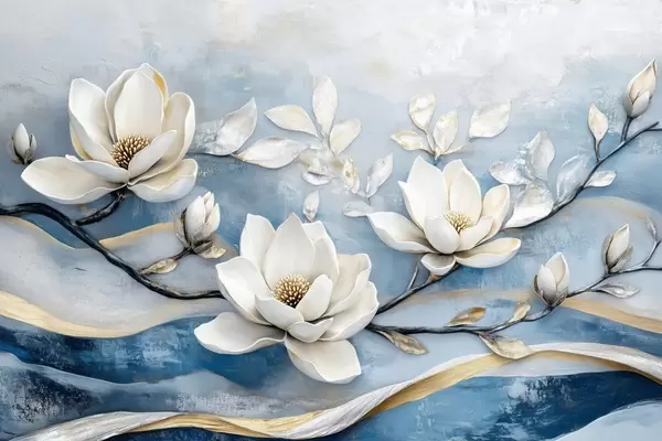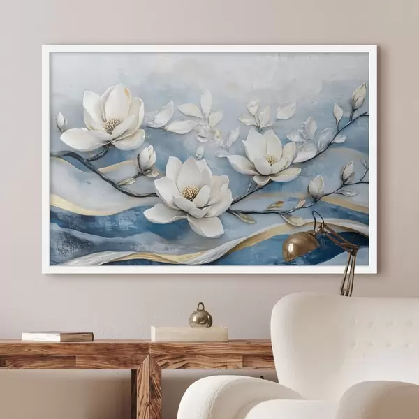 Poster Magnoolia oksa abstraktsel sinikollasel taustal Nr f43323