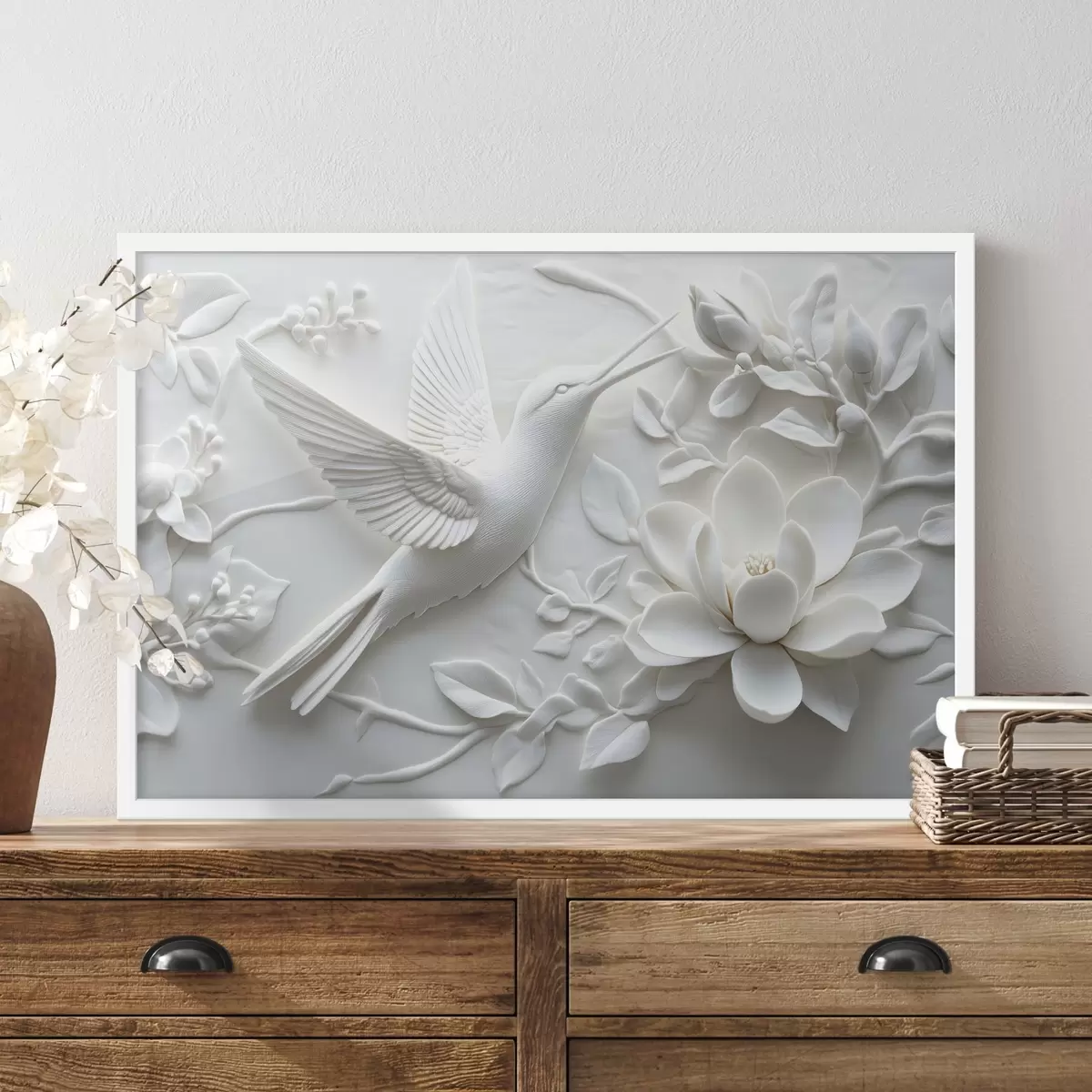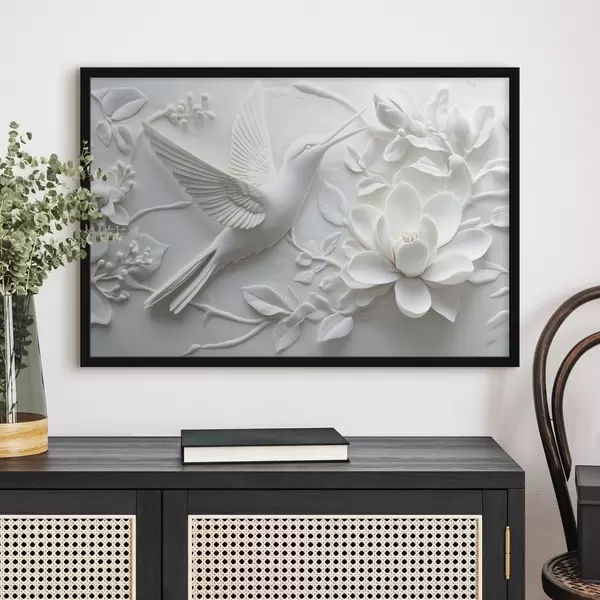 Poster Must-valge 3D pilt linnust ja ümbritsevatest lilledest Nr f43329