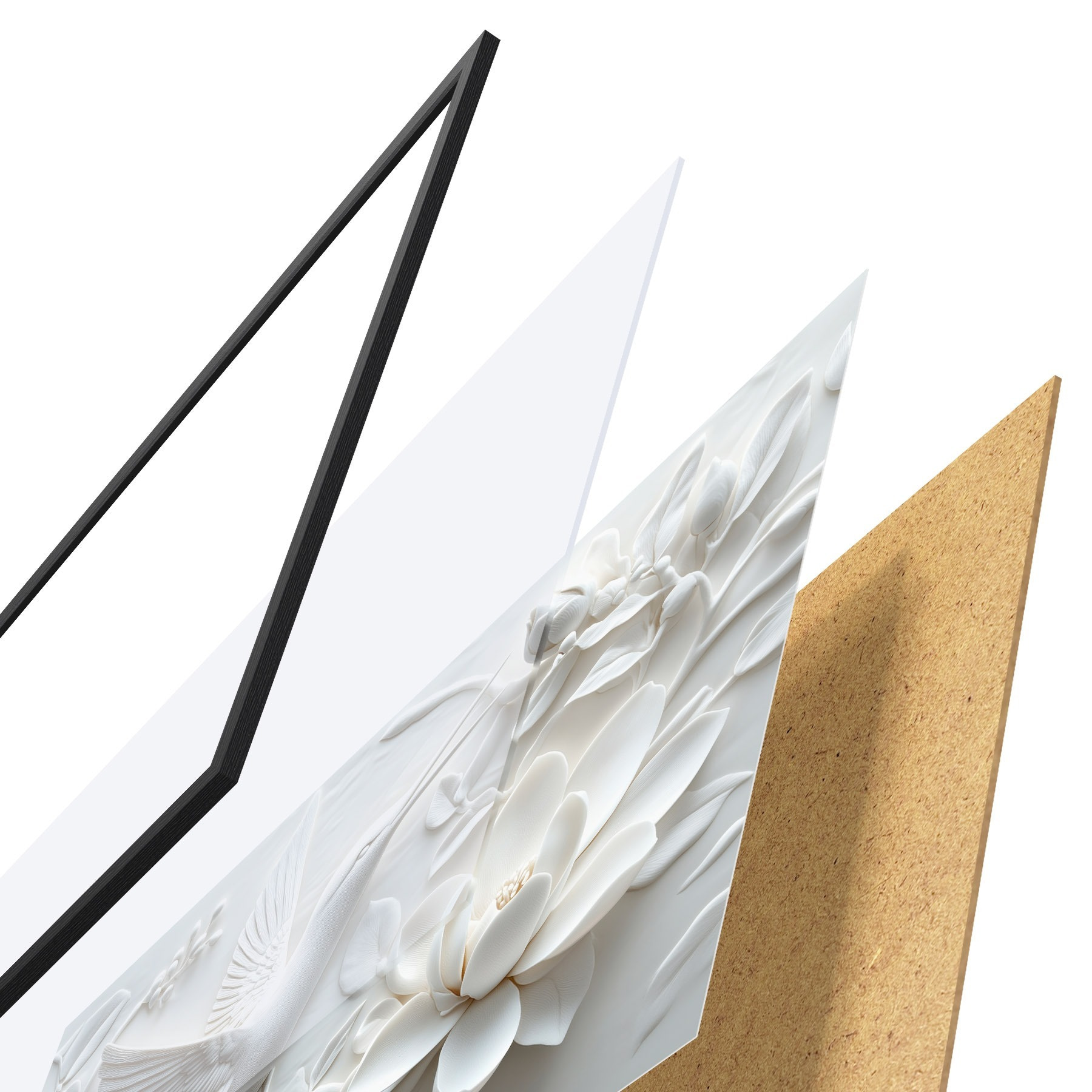 Plakat Must-valge 3D pilt linnust ja ümbritsevatest lilledest f43329
