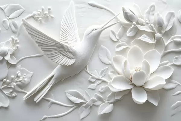 Poster Must-valge 3D pilt linnust ja ümbritsevatest lilledest Nr f43329