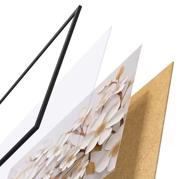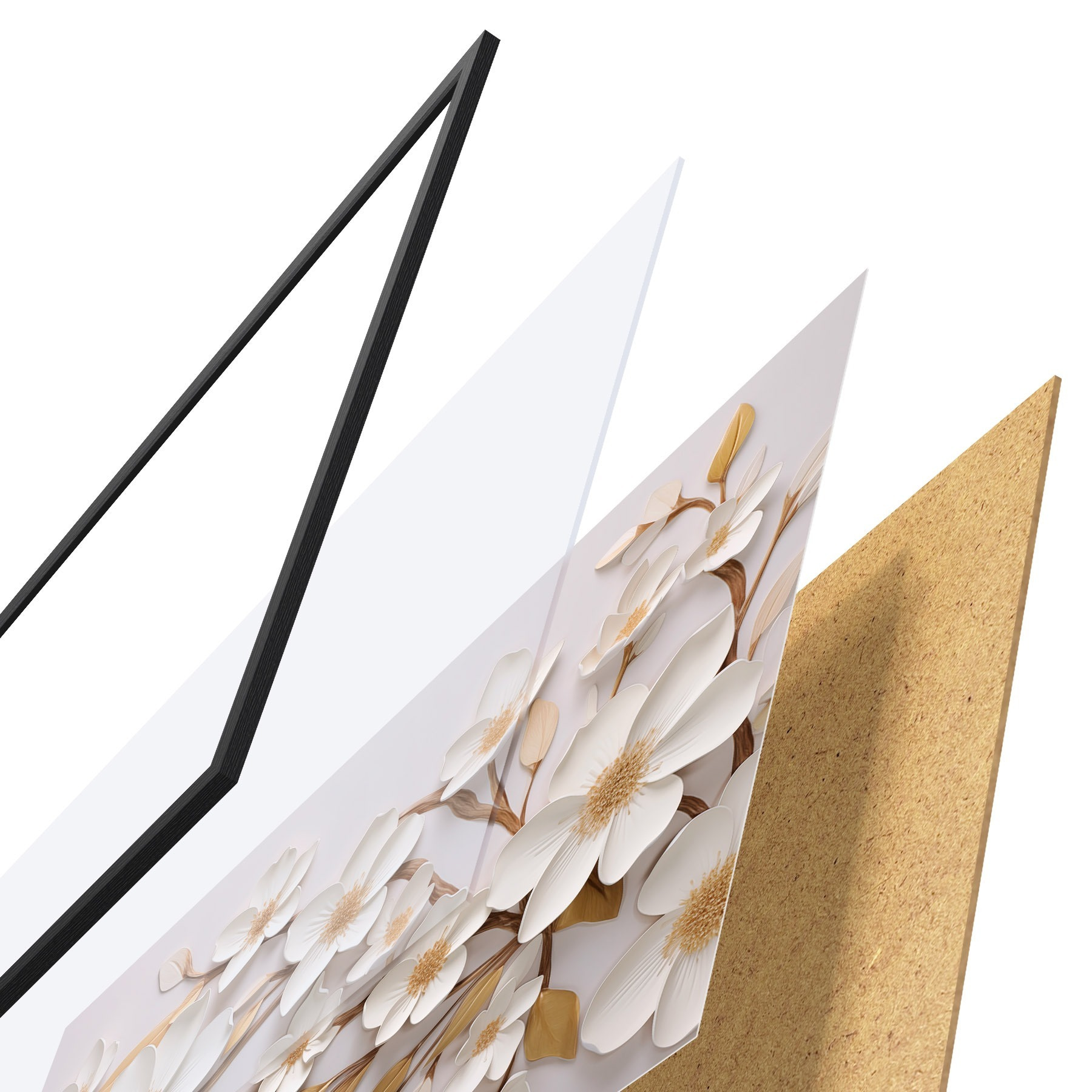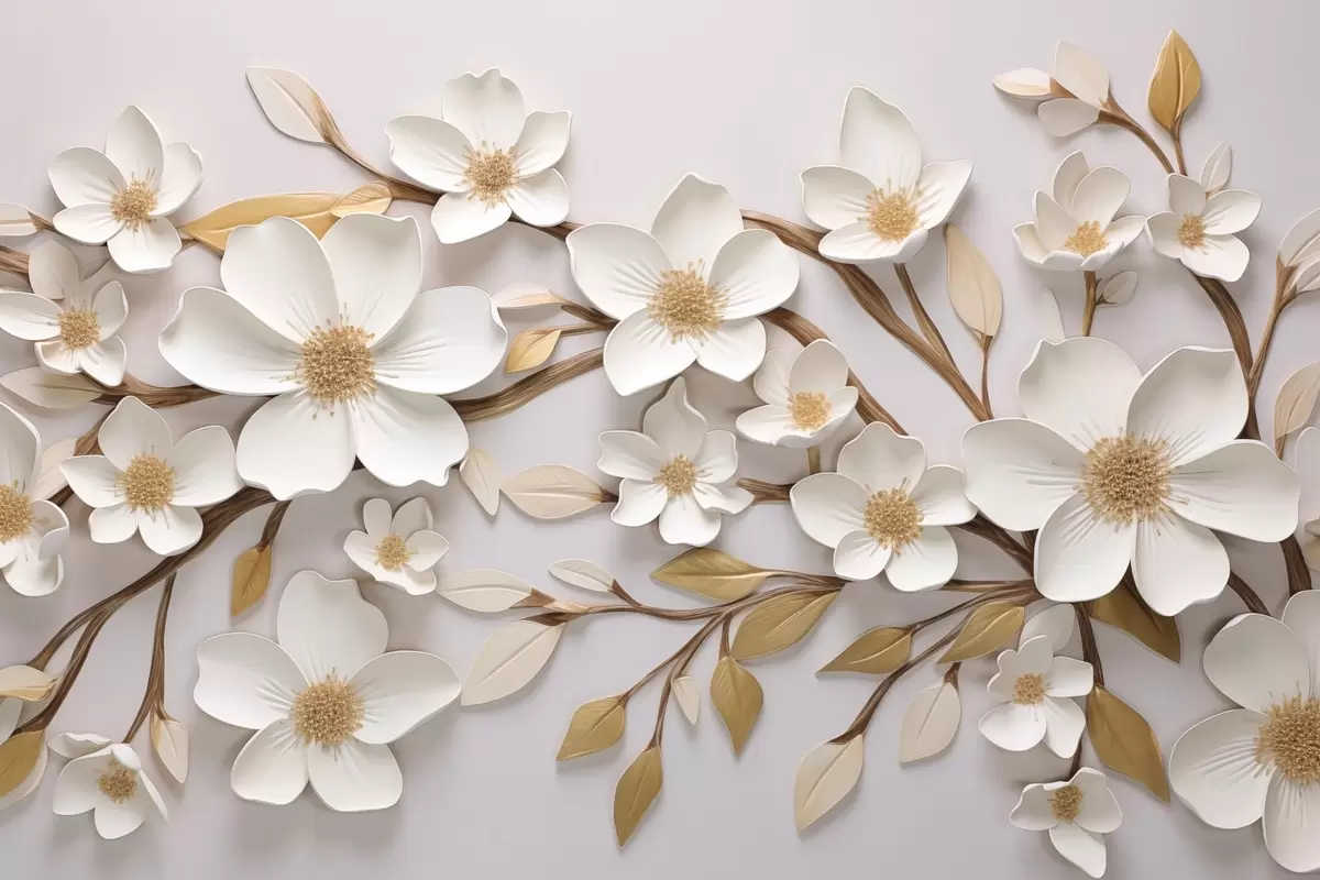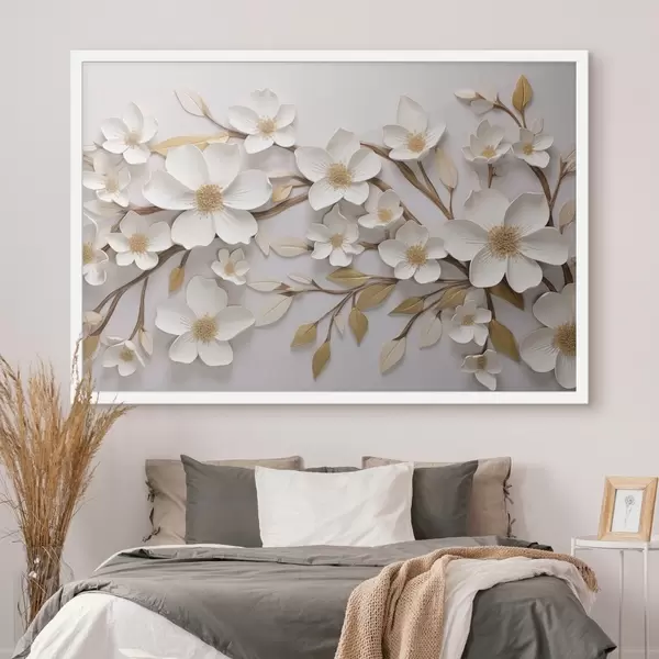 Plakat Valged lilled reljeefse fresko stiilis kollaste aktsentidega f43331