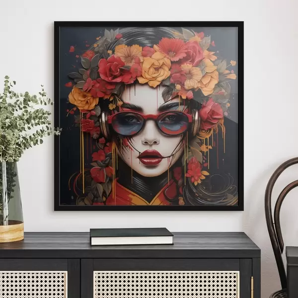 Plakat Naine lilledega peas, tänavakunsti stiilis f43362