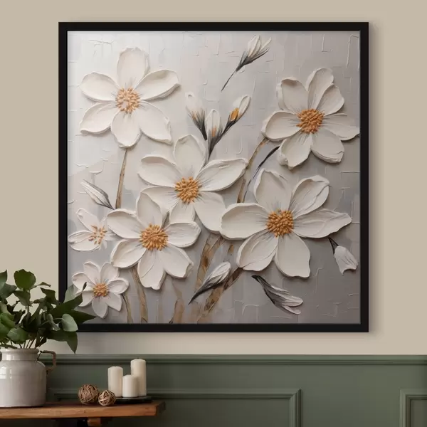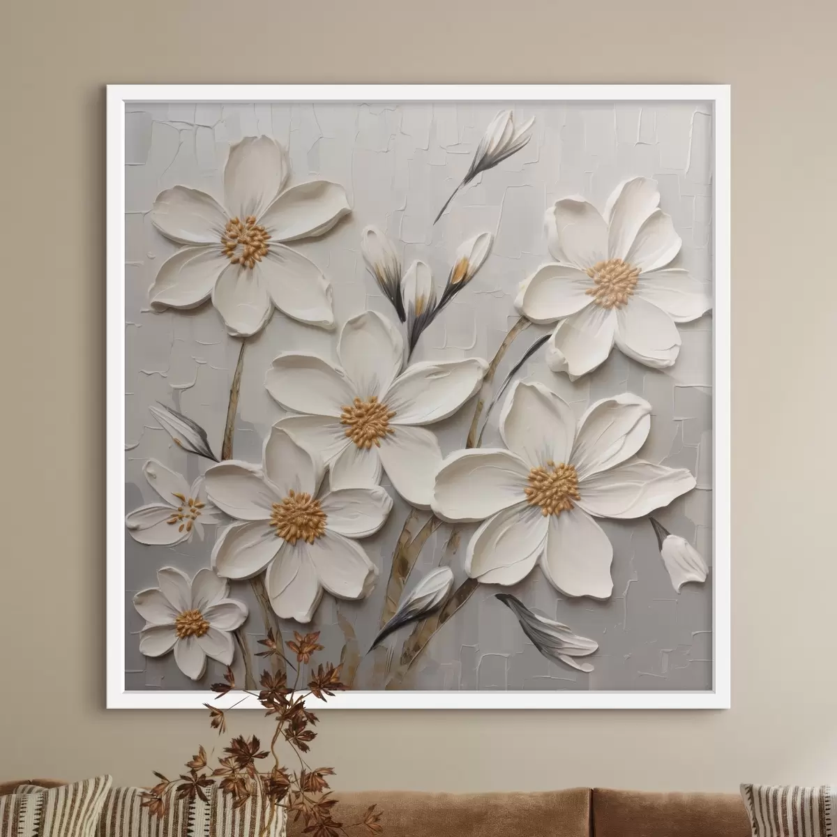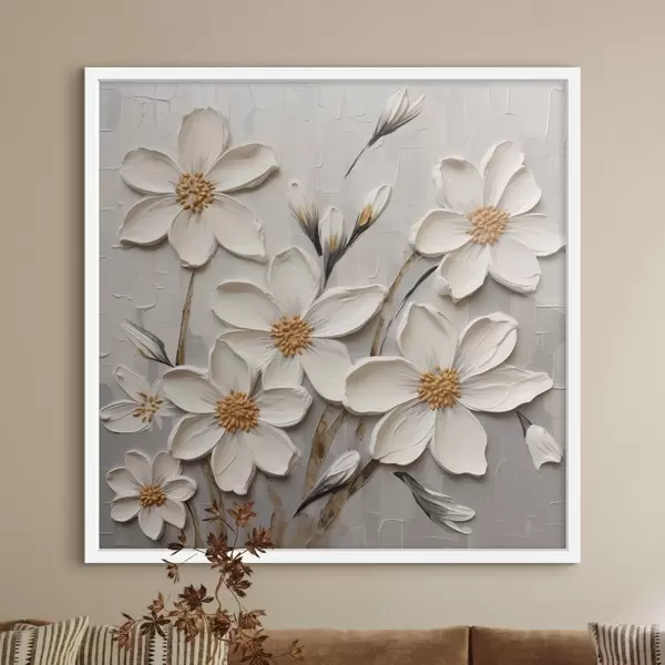 Plakat Valged mahukad lilled maalimisstiilis suurte pintslitõmmetega f43366